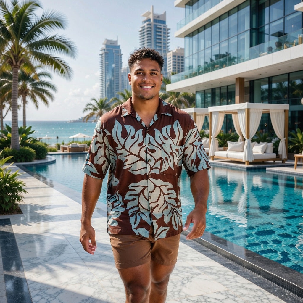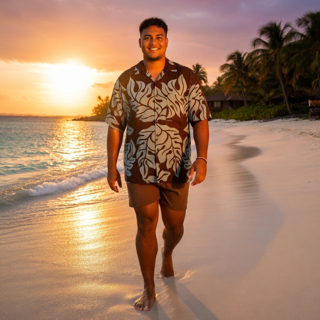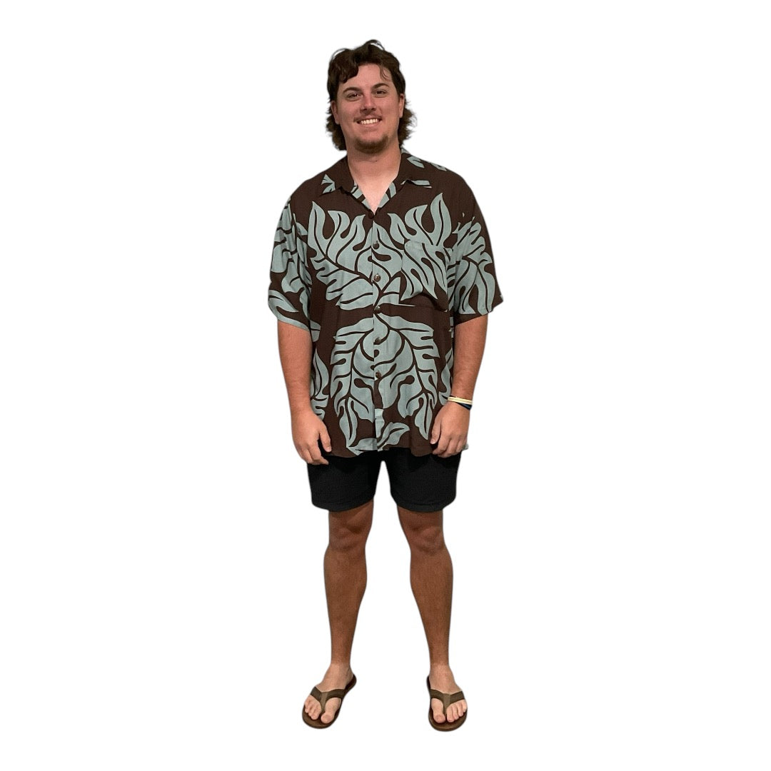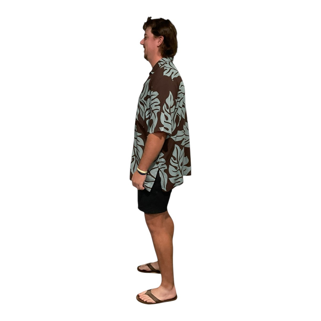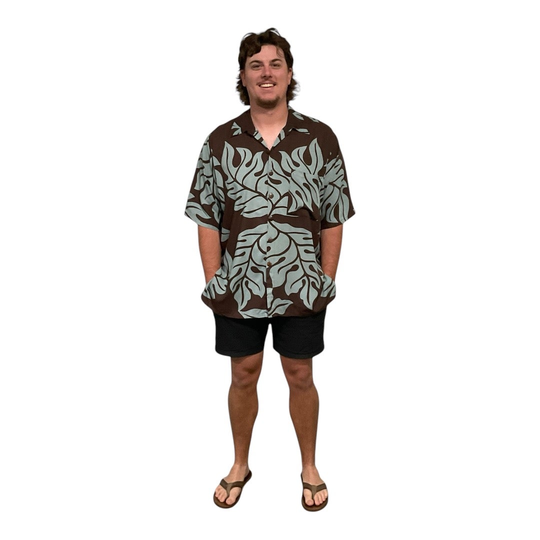 The brown monstera shirt features a bold, tropical-inspired design that adds flair to any casual outfit. Its soft, breathable fabric ensures comfort while showcasing a statement print perfect for laid-back occasions.