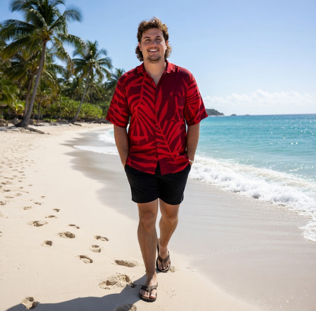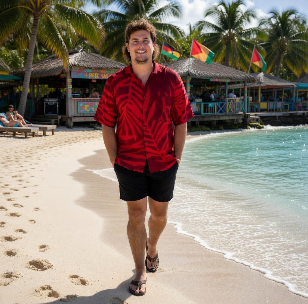 The Fern Print Men's Shirt brings a fresh, tropical vibe to your wardrobe with its bold fern pattern. Perfect for casual outings or a summer day, this shirt combines style and comfort effortlessly.