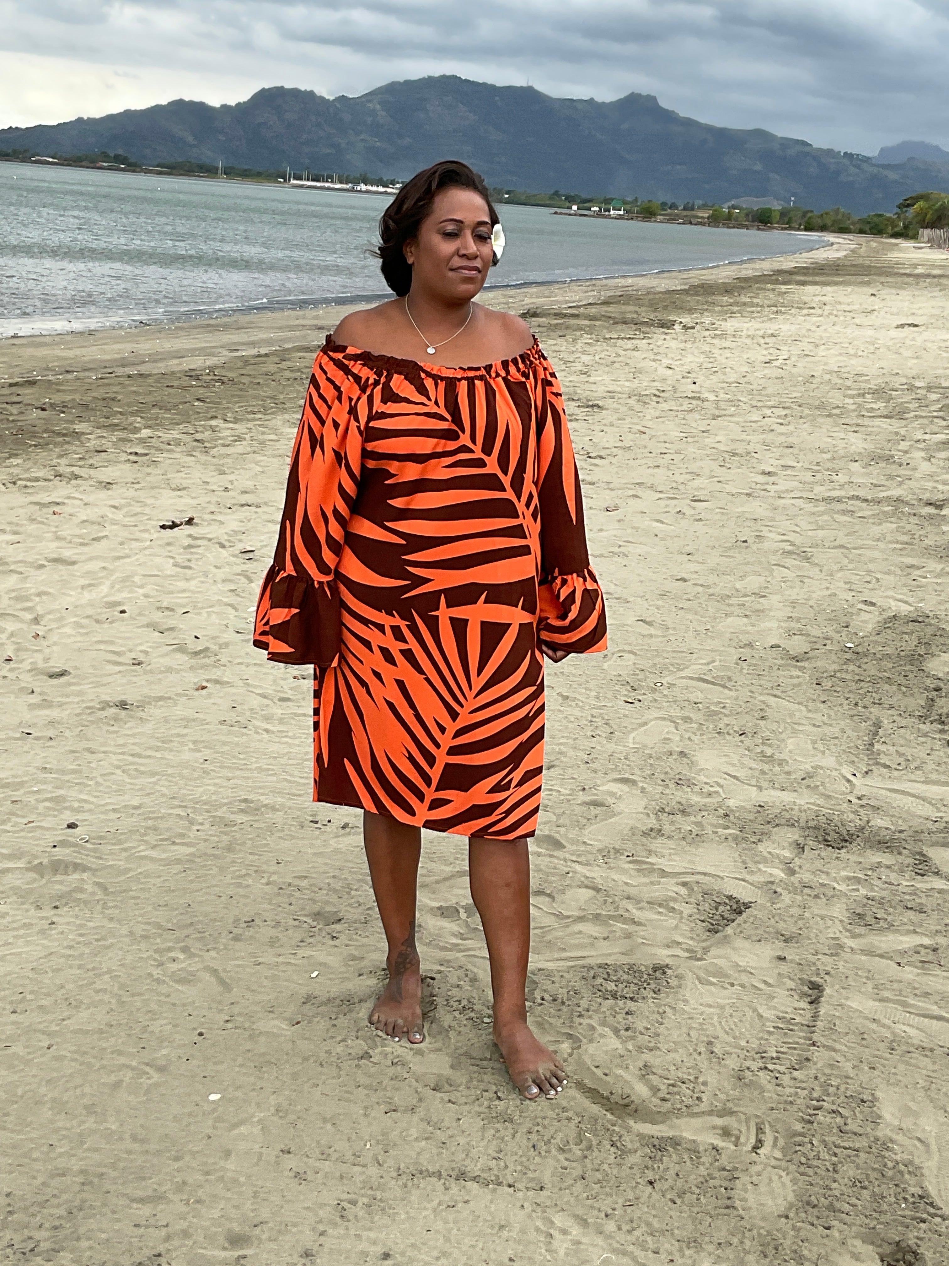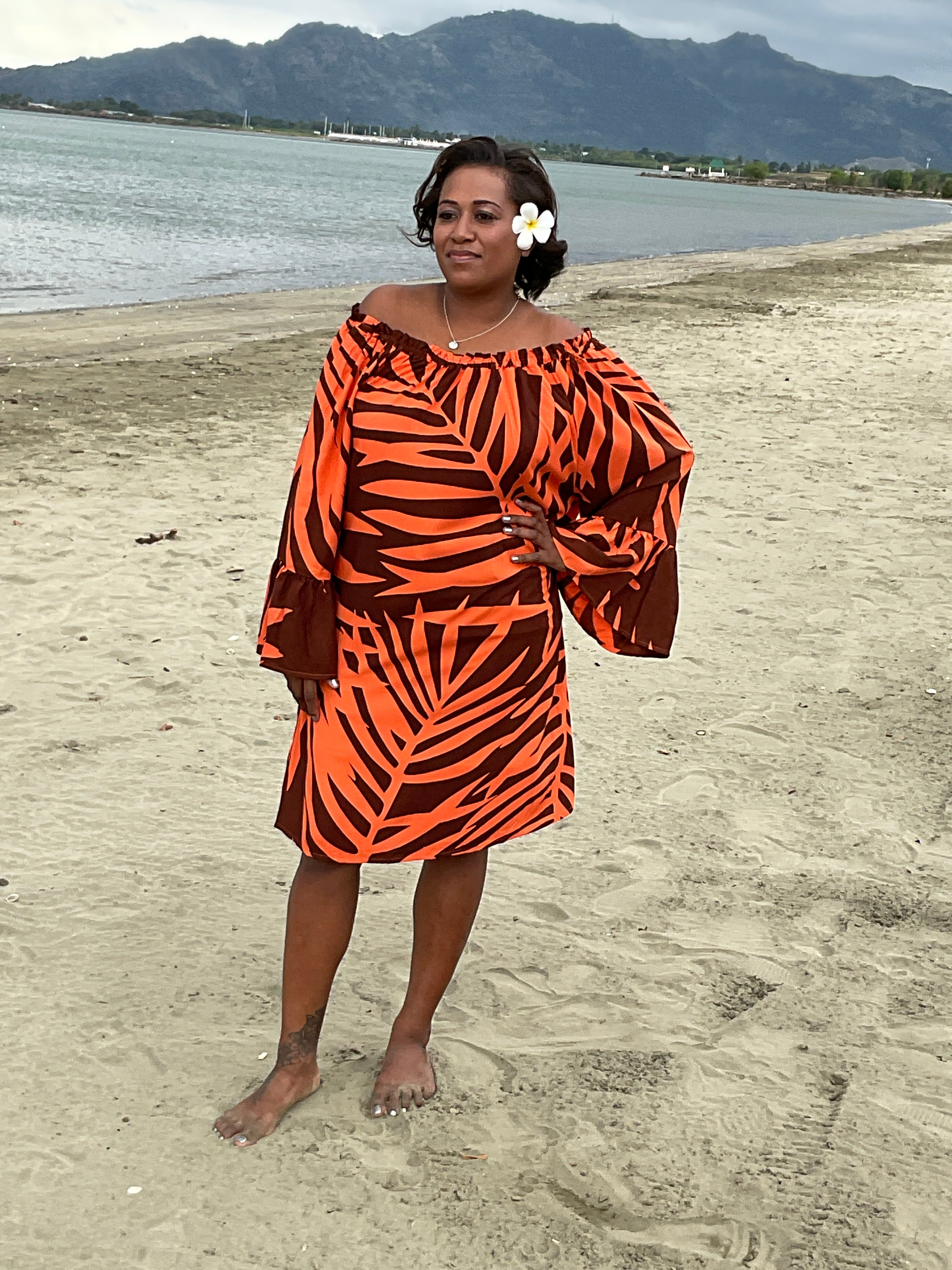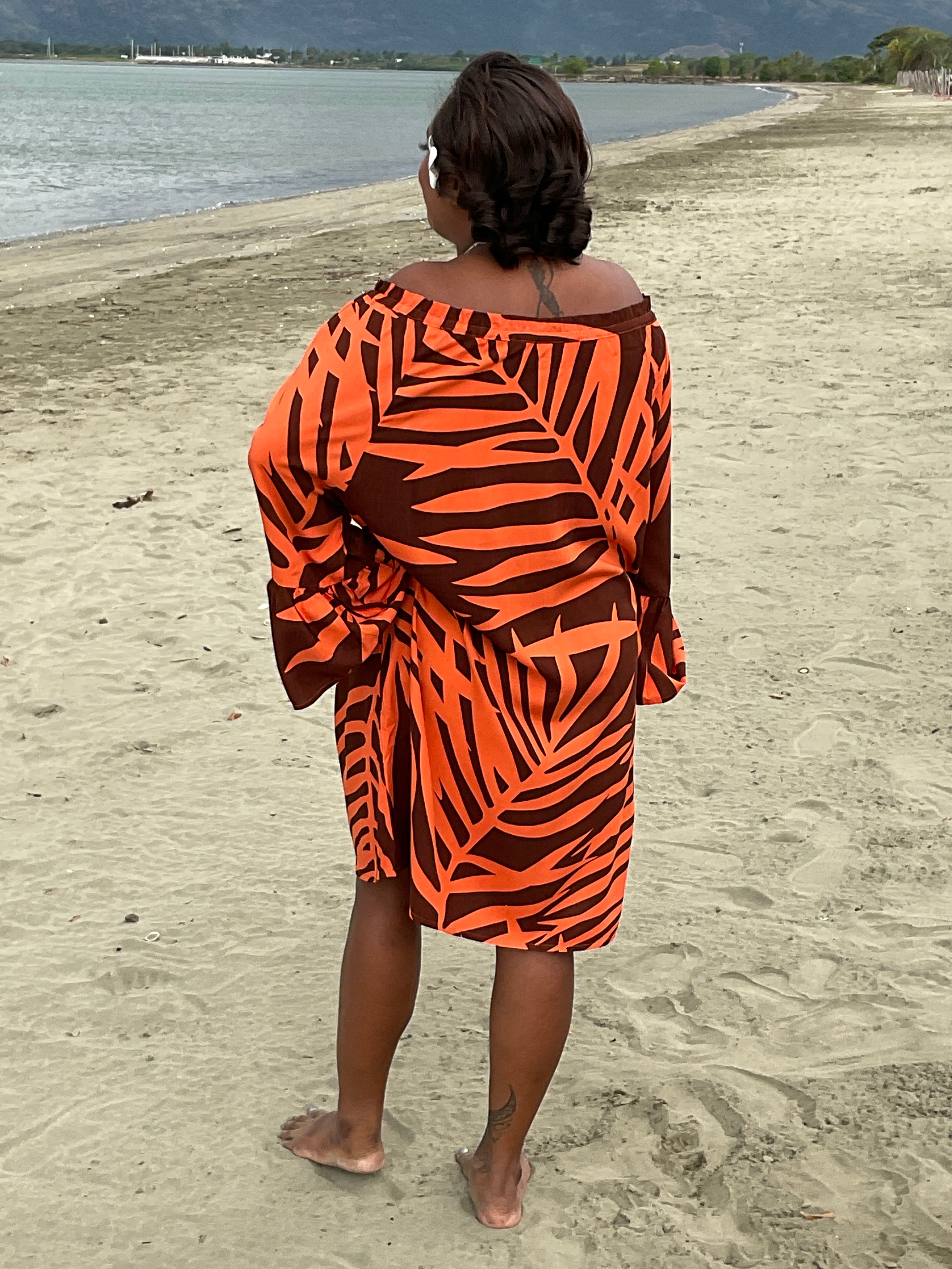 The Fern Print Orange Medi Dress is a chic and lively piece that brings a burst of tropical flair to your wardrobe. With its bold fern print and flattering midi length, this dress is perfect for brightening up any day. Ideal for casual outings or a day at the beach, it effortlessly combines style and comfort.