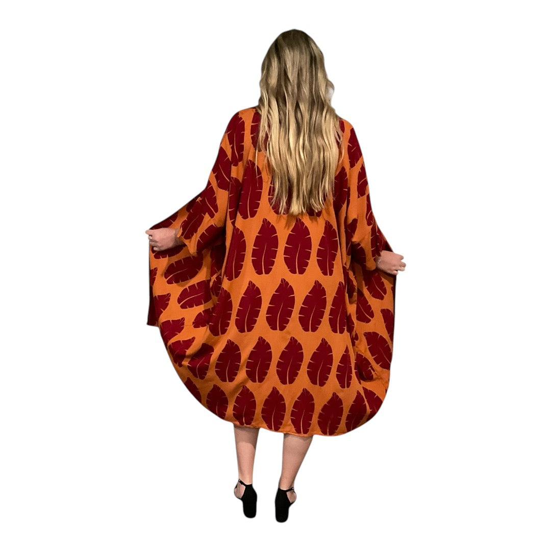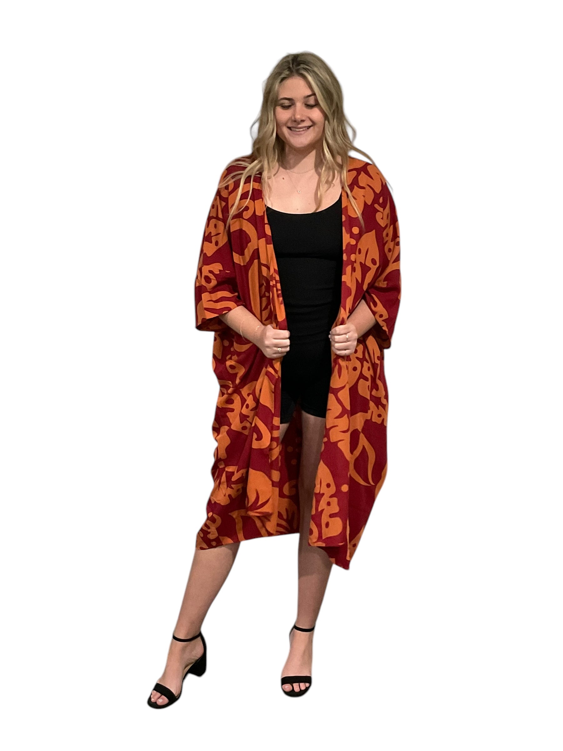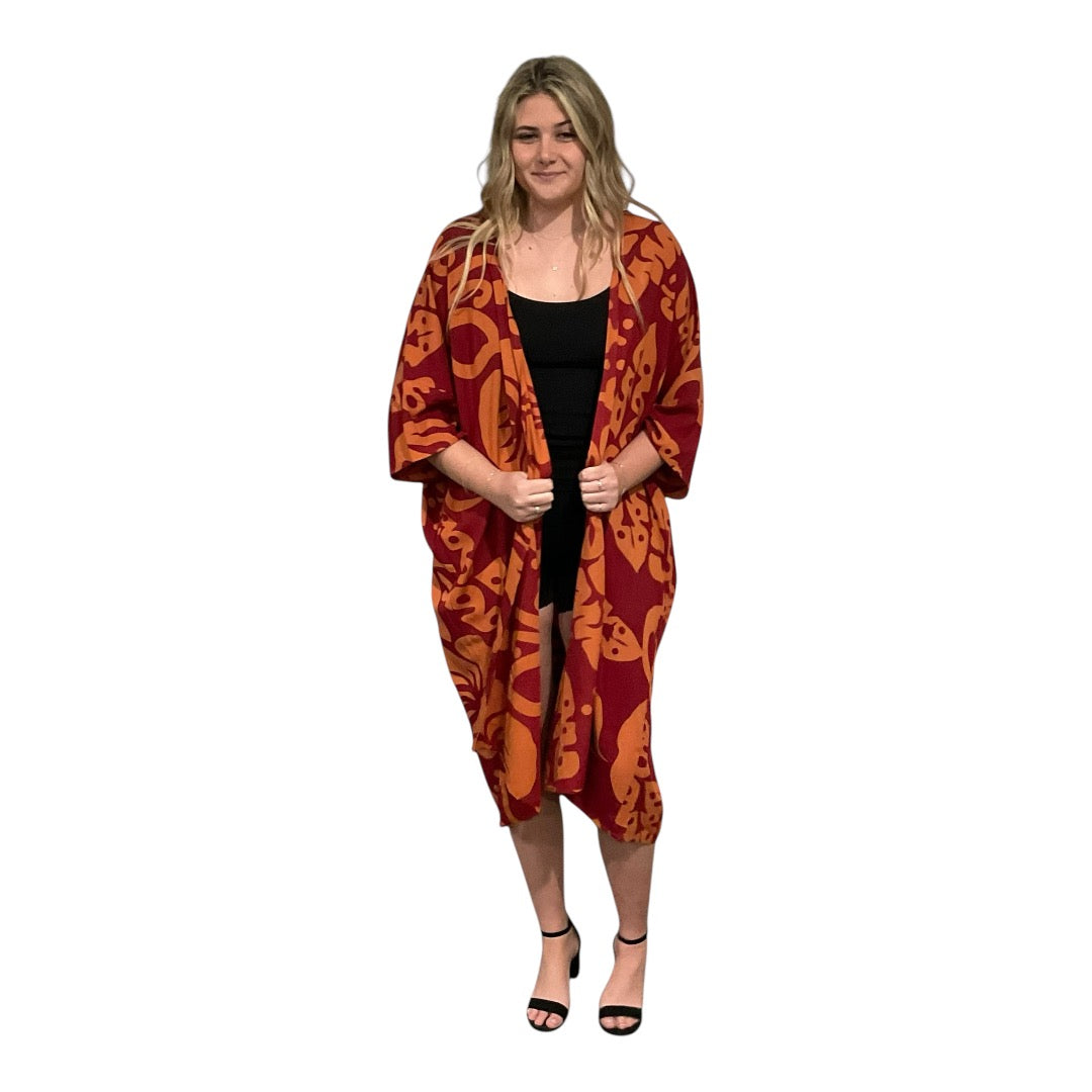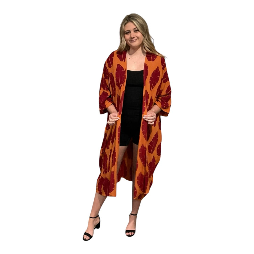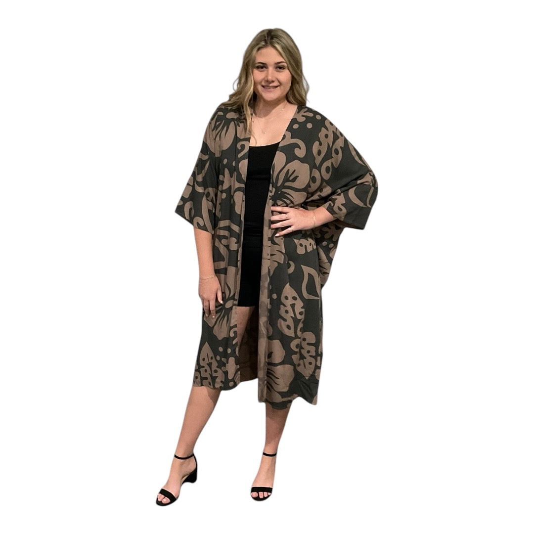 Elevate your look with this chic and versatile rayon kimono. Featuring a bold island-inspired print, this lightweight layering piece drapes effortlessly over any outfit. Perfect for casual days, beach cover-ups, or evening outings, it adds both comfort and style.