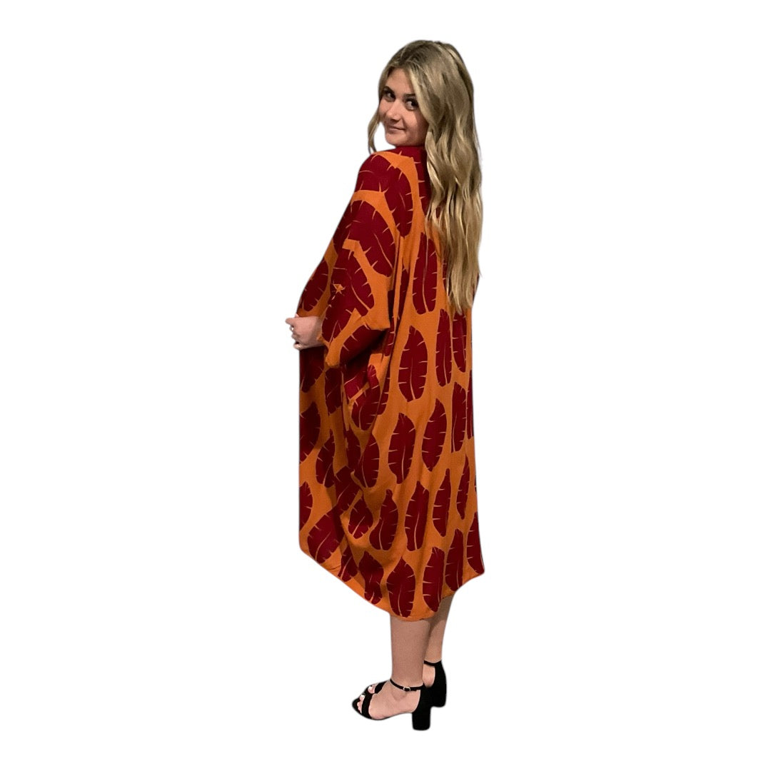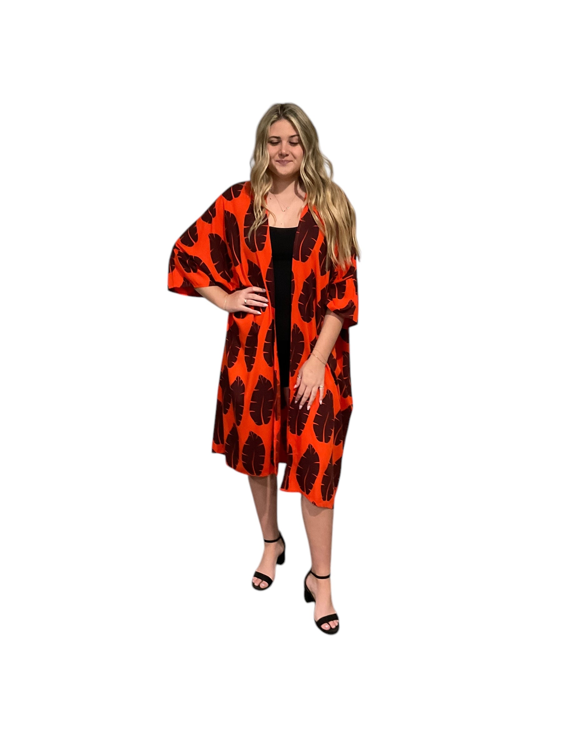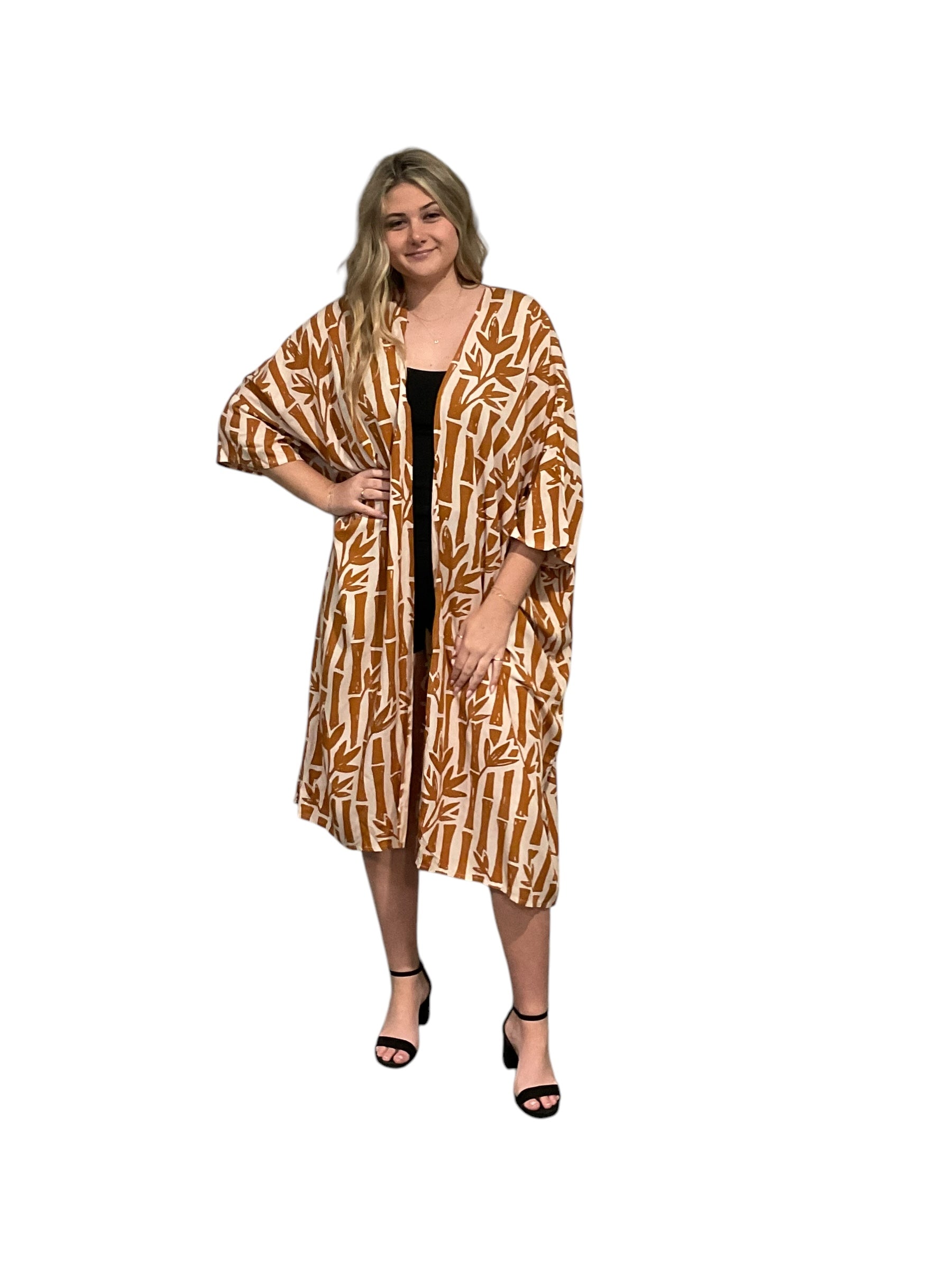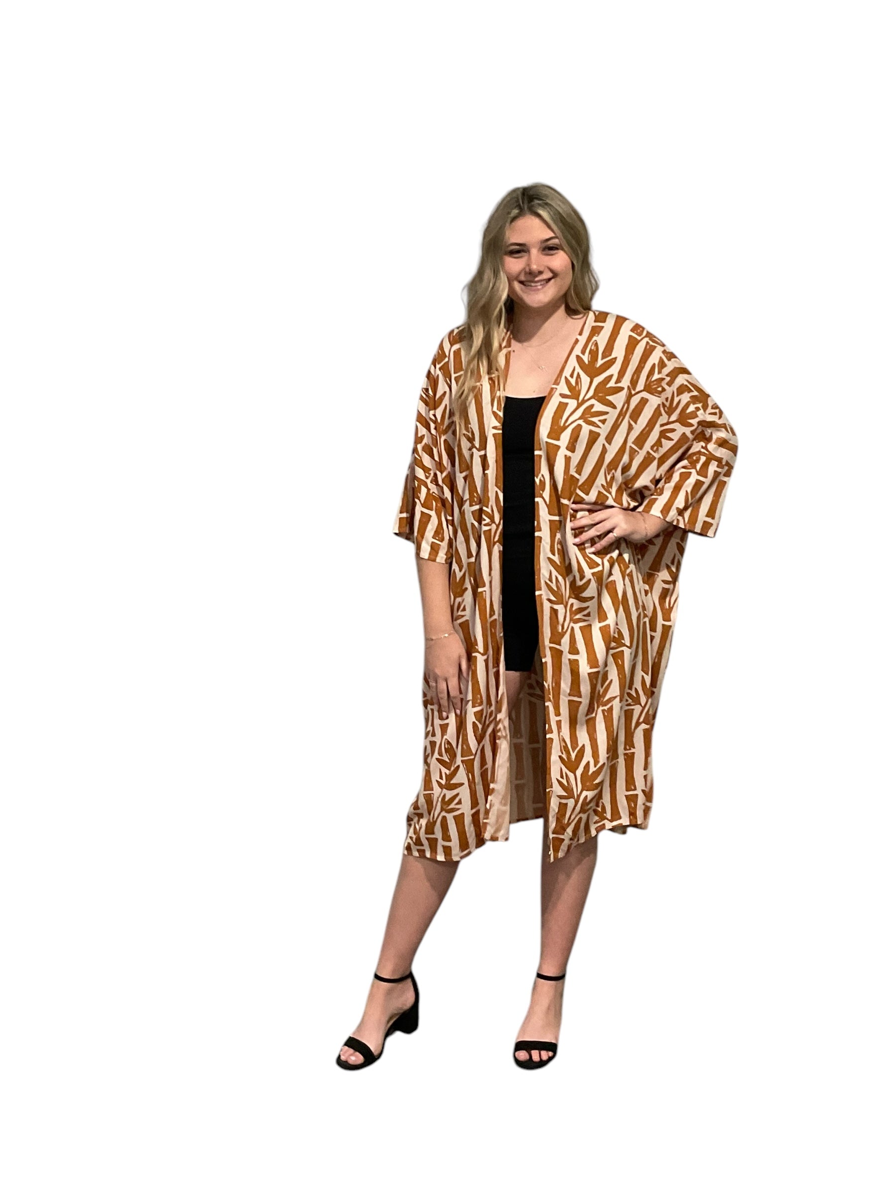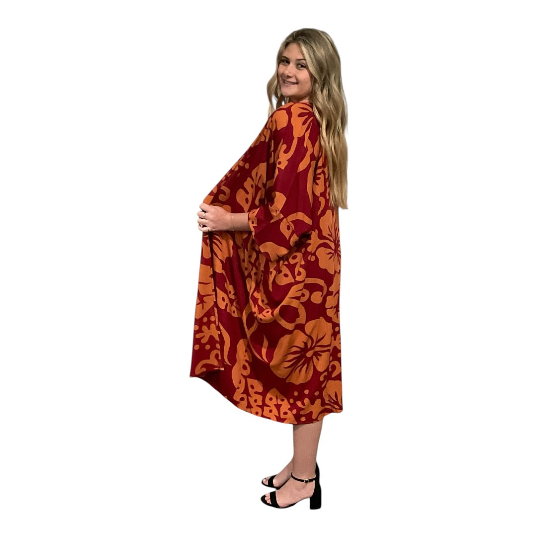 Elevate your look with this chic and versatile rayon kimono. Featuring a bold island-inspired print, this lightweight layering piece drapes effortlessly over any outfit. Perfect for casual days, beach cover-ups, or evening outings, it adds both comfort and style.