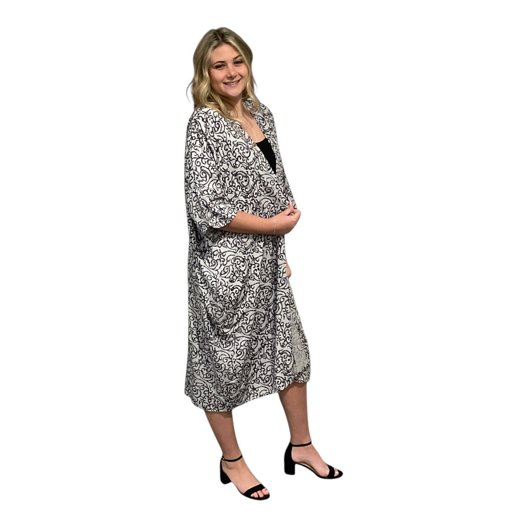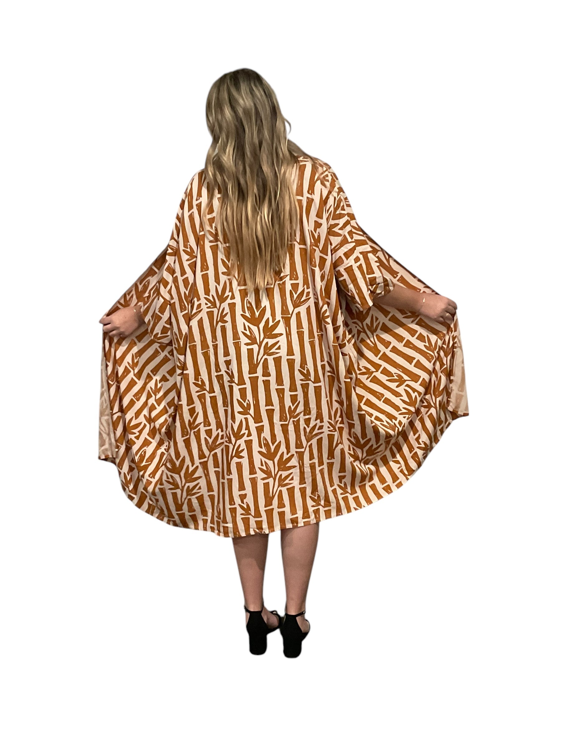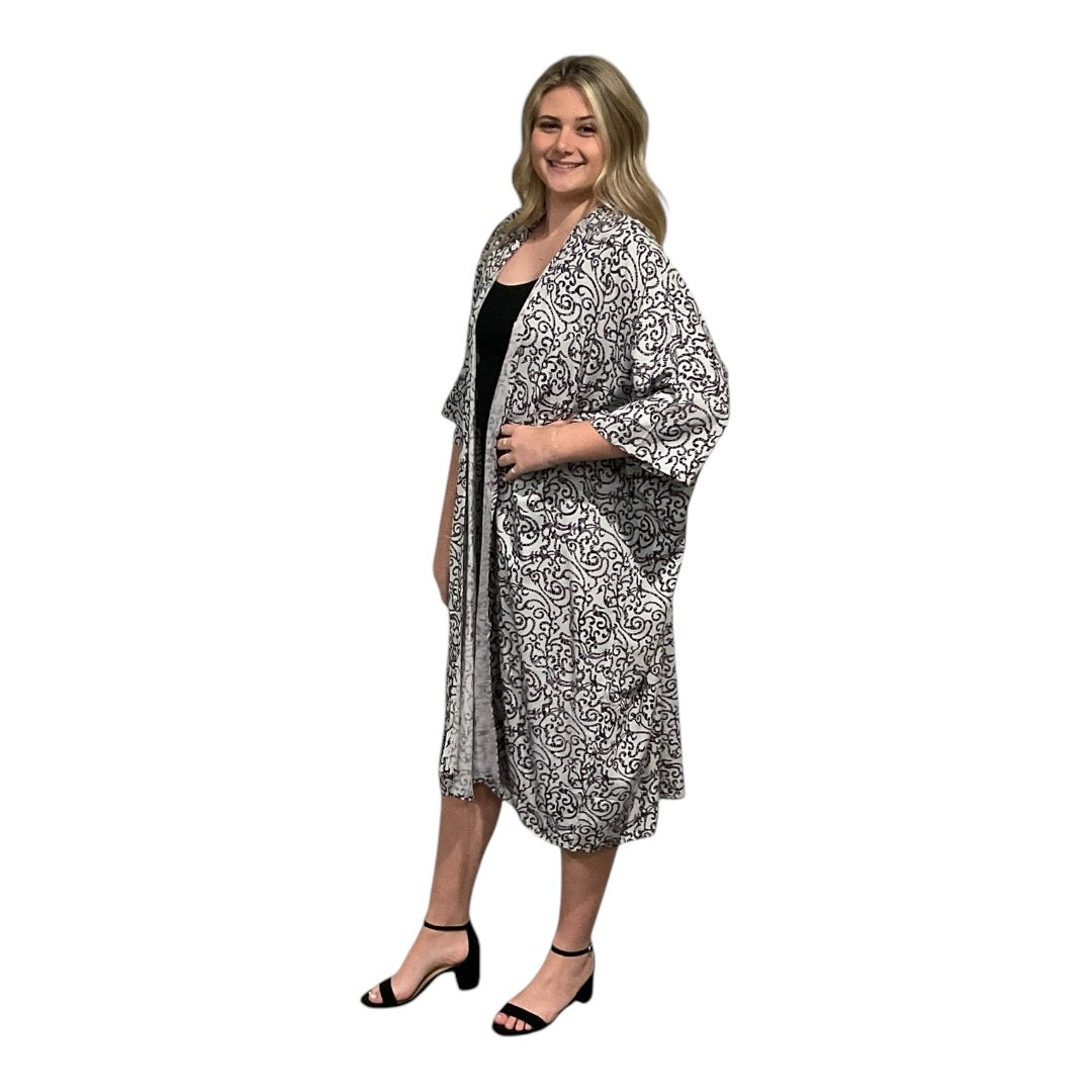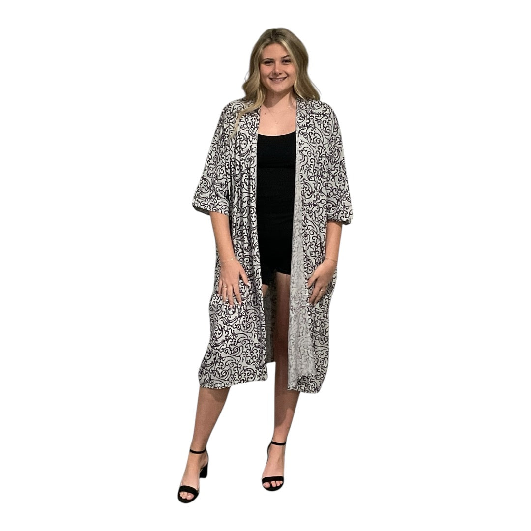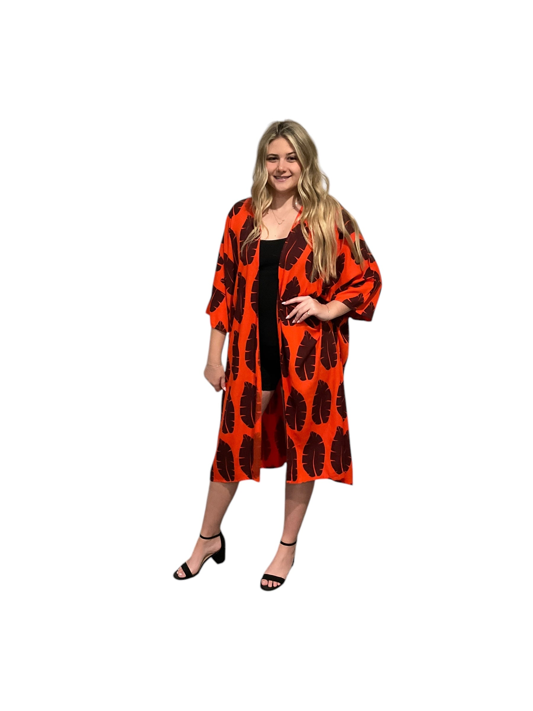 Elevate your look with this chic and versatile rayon kimono. Featuring a bold island-inspired print, this lightweight layering piece drapes effortlessly over any outfit. Perfect for casual days, beach cover-ups, or evening outings, it adds both comfort and style.