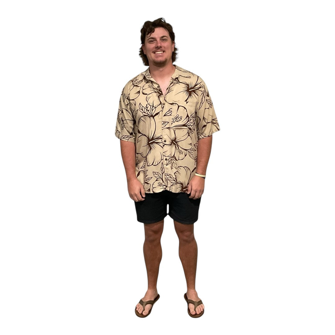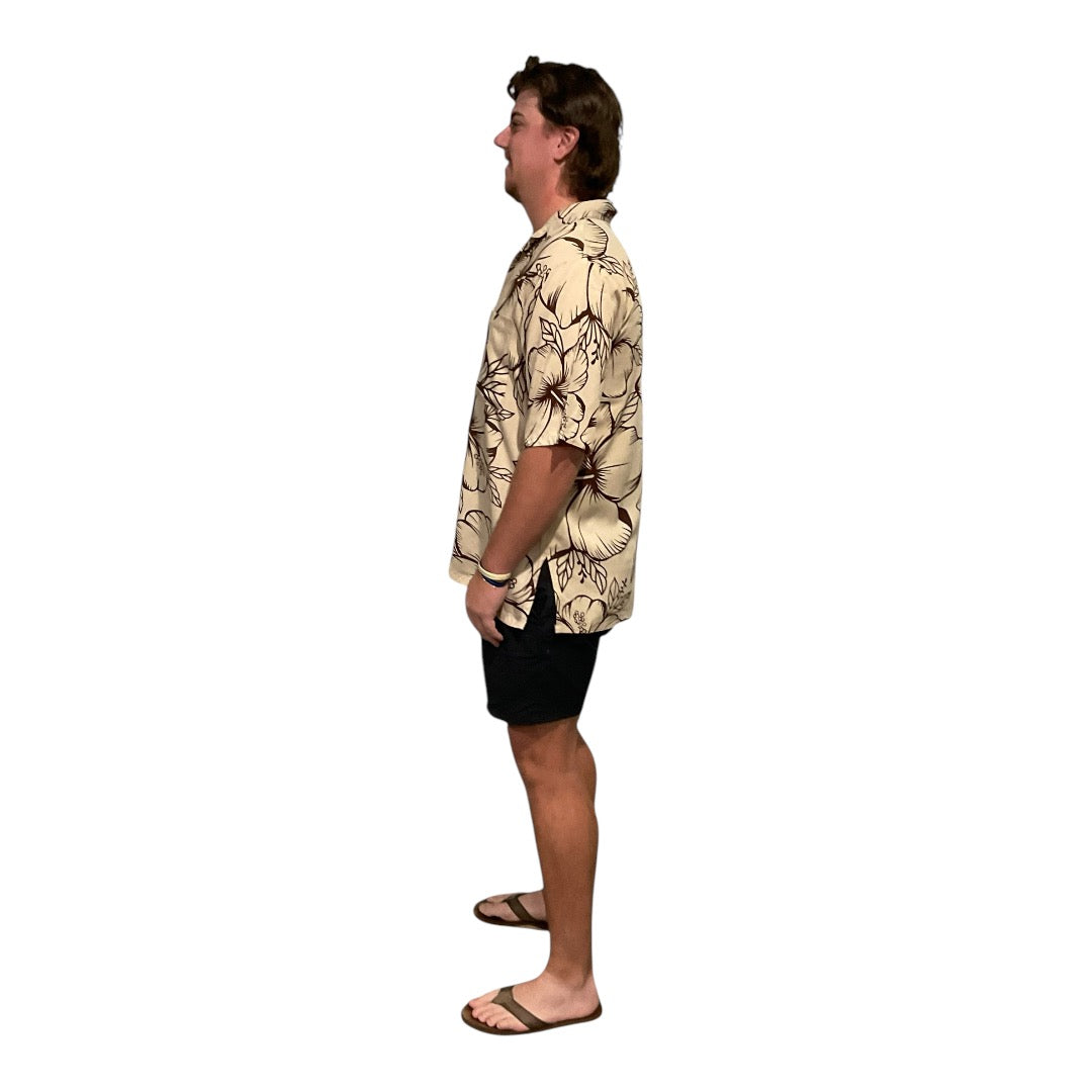 The Hibiscus Print Men’s Shirt features a bold tropical pattern with vibrant hibiscus flowers, perfect for a stylish and laid-back look. Its lightweight fabric ensures comfort while adding a touch of exotic flair to any casual outfit.