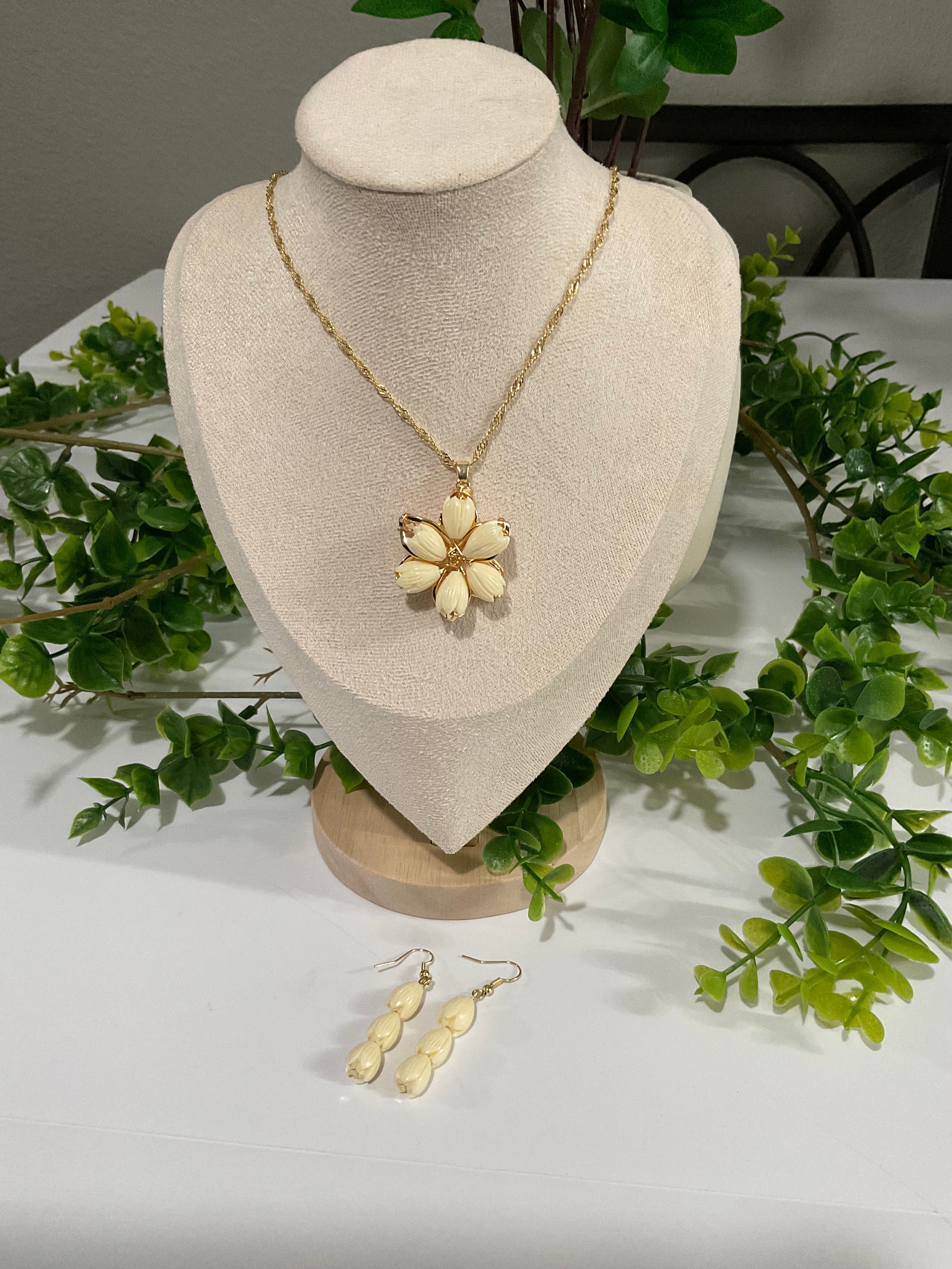 Bring effortless island elegance to your look with our Island Bloom Jewelry Set, inspired by tropical florals and sun-kissed shores. This stunning matching necklace and earring set features delicate flower motifs with luminous pearl-style resin petals, finished in radiant gold plating for a warm, luxurious glow.