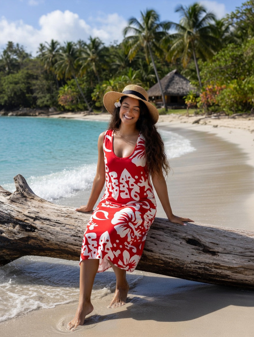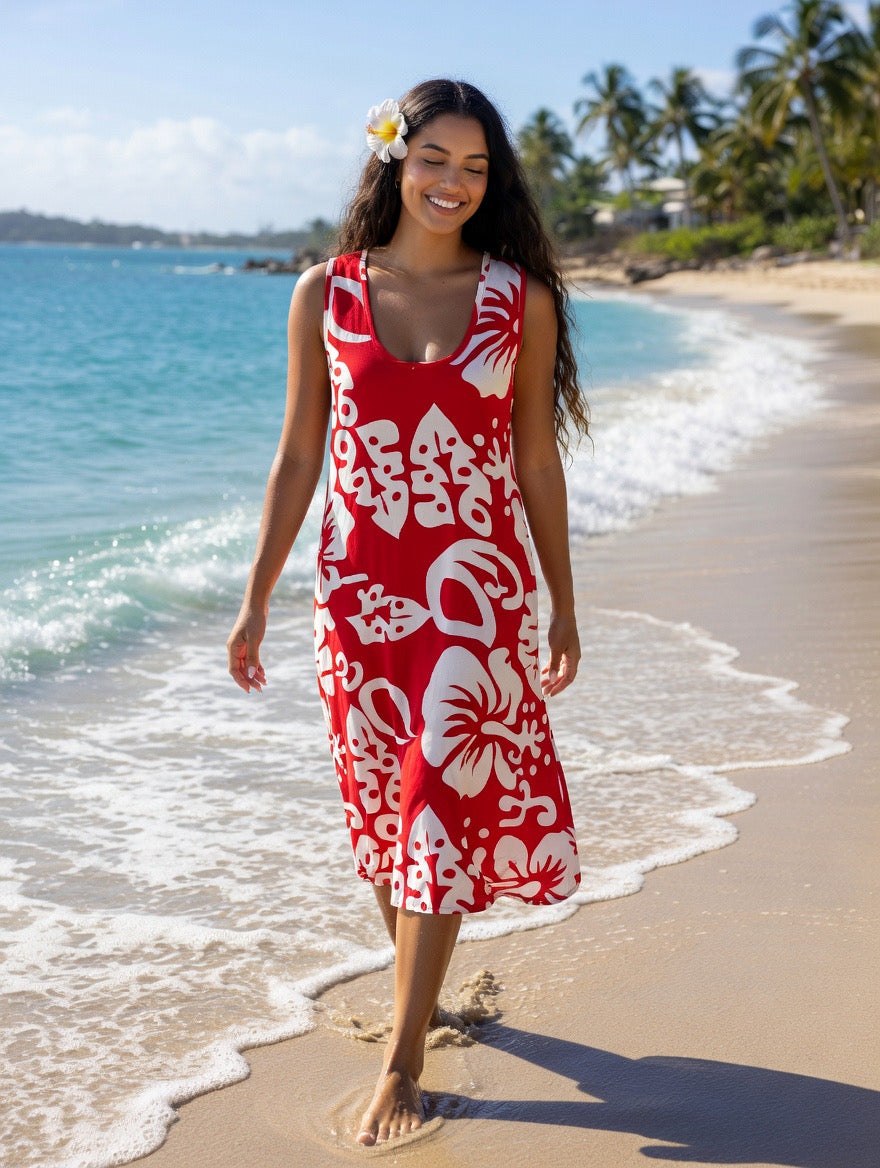 Bring effortless island elegance to your wardrobe with our island breeze sleeveless hibiscus dress. Designed for comfort and style, this lightweight dress features a relaxed, flowy silhouette that moves beautifully with every step. The soft neutral tone paired with bold tropical hibiscus prints creates the perfect balance of simplicity and statement.