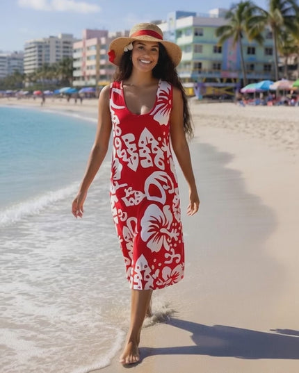 Crafted for warm days and sun-soaked adventures, this sleeveless dress is breathable, easy to wear, and ideal for beach outings, resort vacations summer gatherings, or casual everyday wear. Whether you're strolling along the shoreline or enjoying a sunset dinner, this dress delivers that effortless tropical vibe.