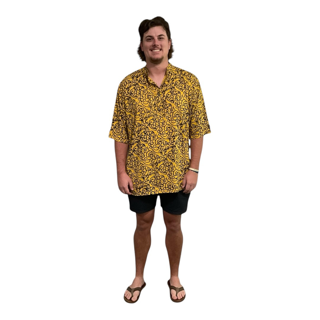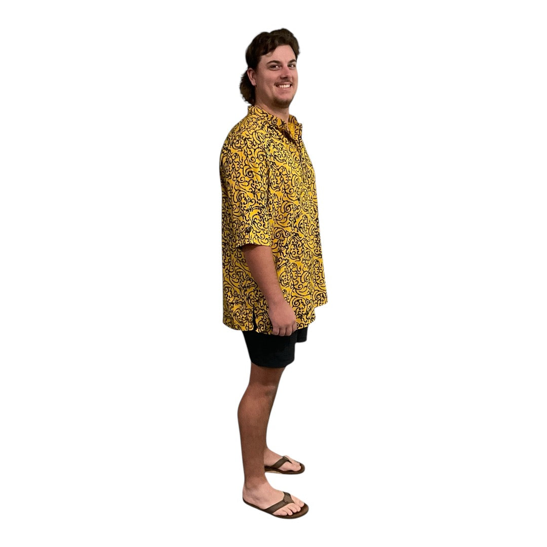 The Men's Resort Wear Bula Shirt features a vibrant, tropical design that's perfect for warm-weather escapes. Made from lightweight, breathable fabric, it ensures comfort and style for any casual outing or vacation. Its relaxed fit and bold print make it a standout piece for a laid-back yet fashionable look.