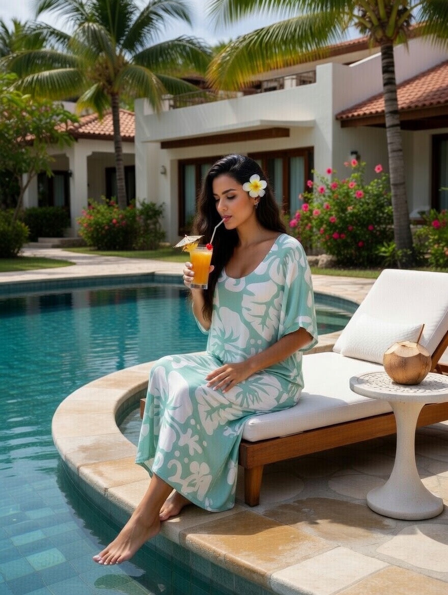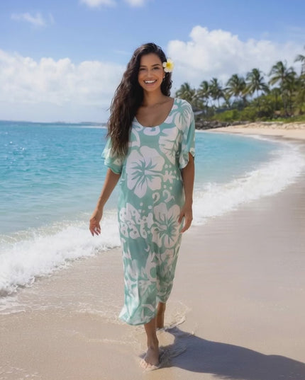 Bring effortless island beauty to your wardrobe with this mint green tropical hibiscus rayon maxi dress, designed for comfort, elegance, and relaxed summer living. Made from soft, breathable rayon fabric, this dress feels light and airy, making it perfect for warm weather, beach vacations, and tropical getaways.