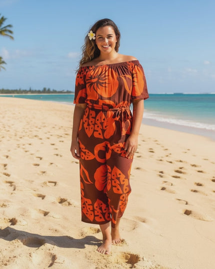The off-the-shoulder jumpsuit combines elegance with comfort, making it a perfect choice for both casual days and evening outings. Its flattering neckline and relaxed fit create a chic silhouette, while the flowy design keeps it easy to wear from day to night.