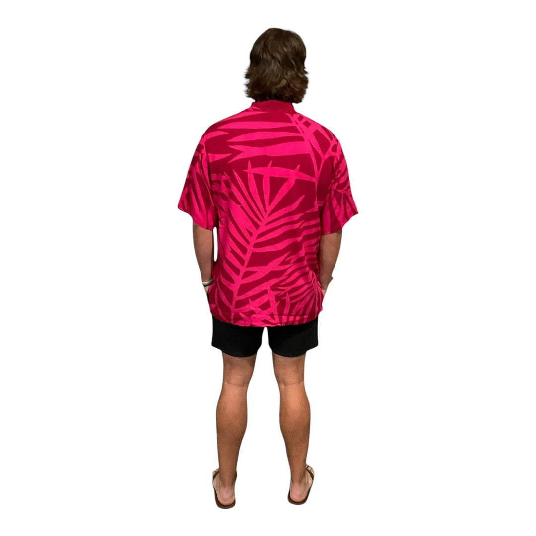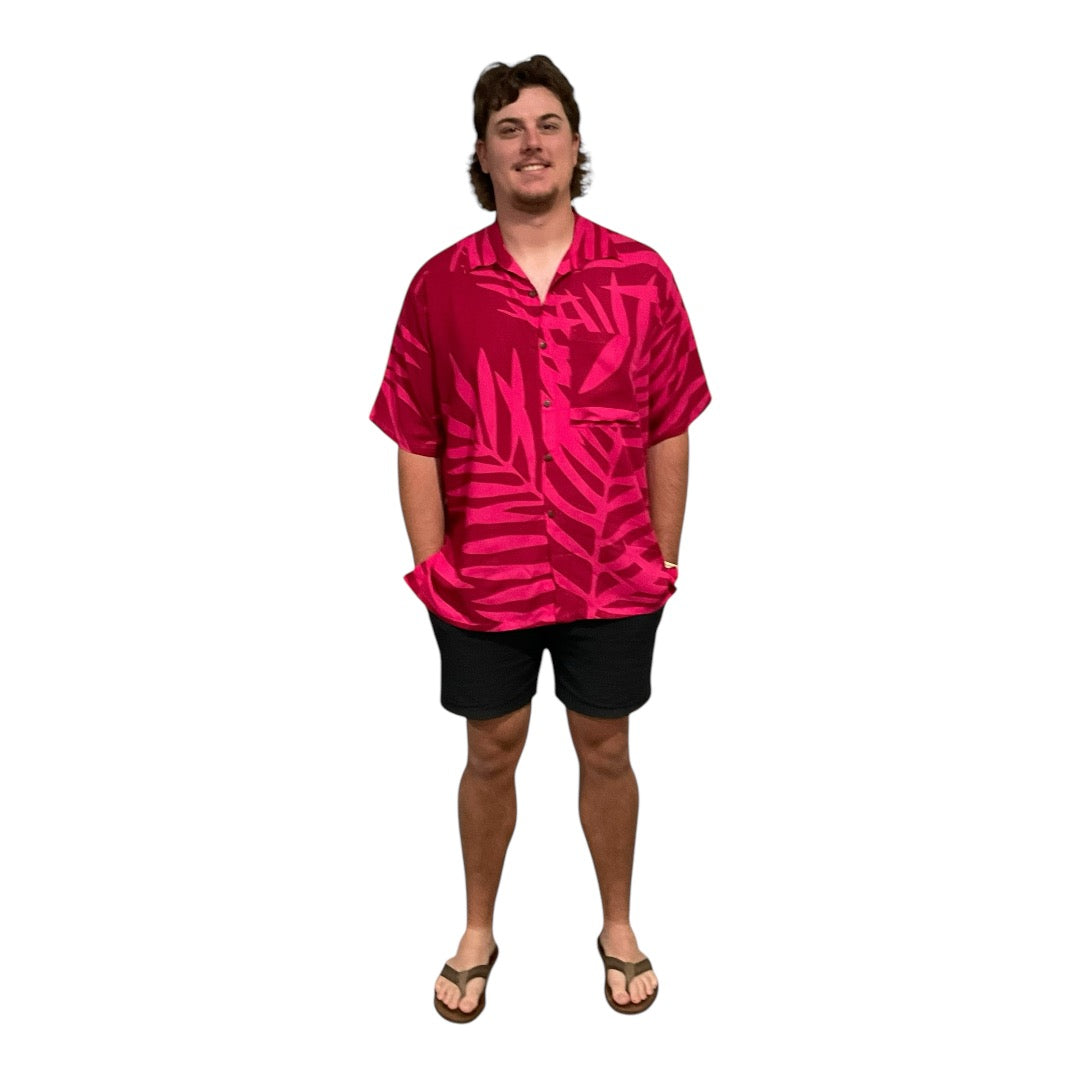 • Last stock! Pink on red fern print men's shirt