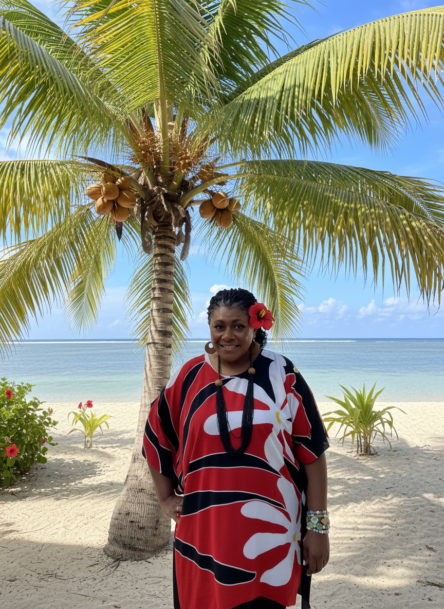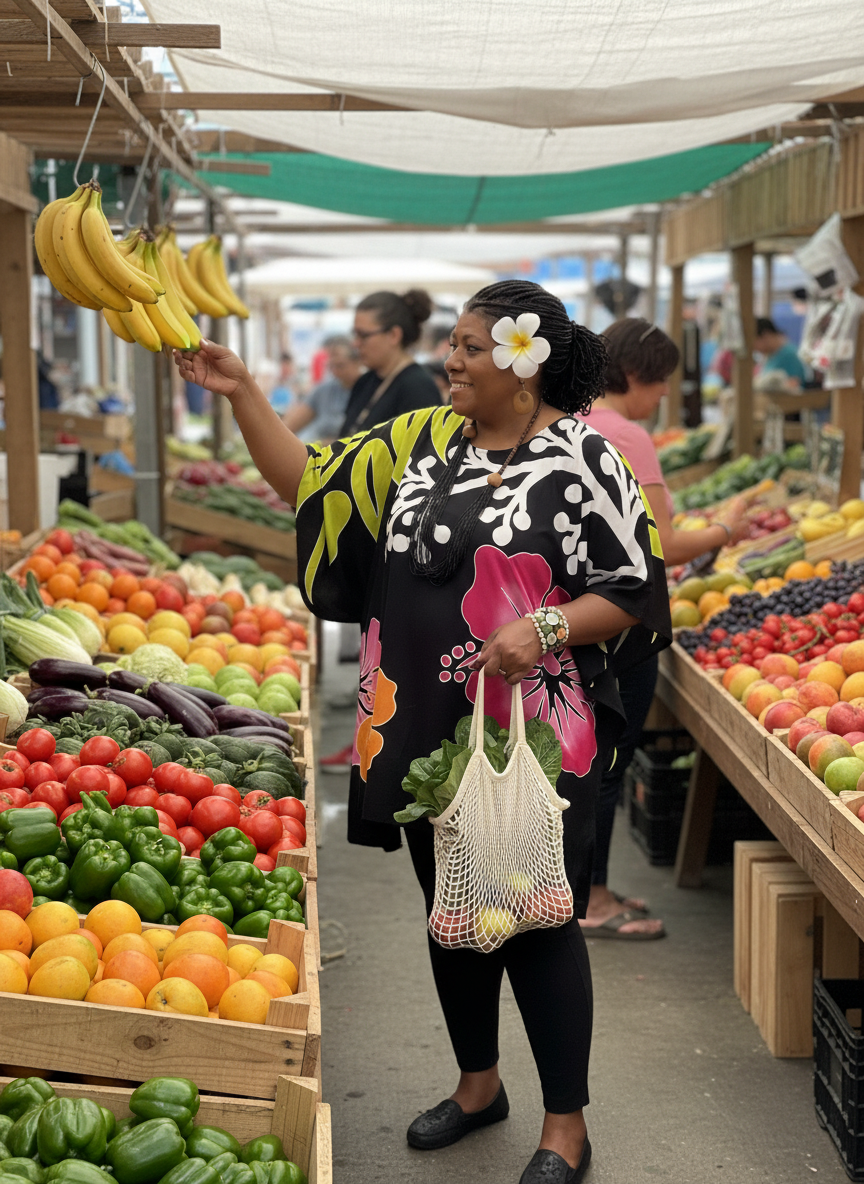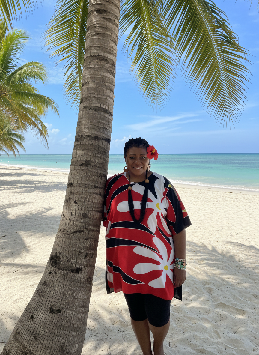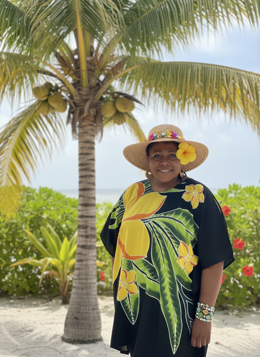Style it with leggings, slim pants, or wear it as a statement pieces all on its own for that true  island Elegance, Global Confidence look