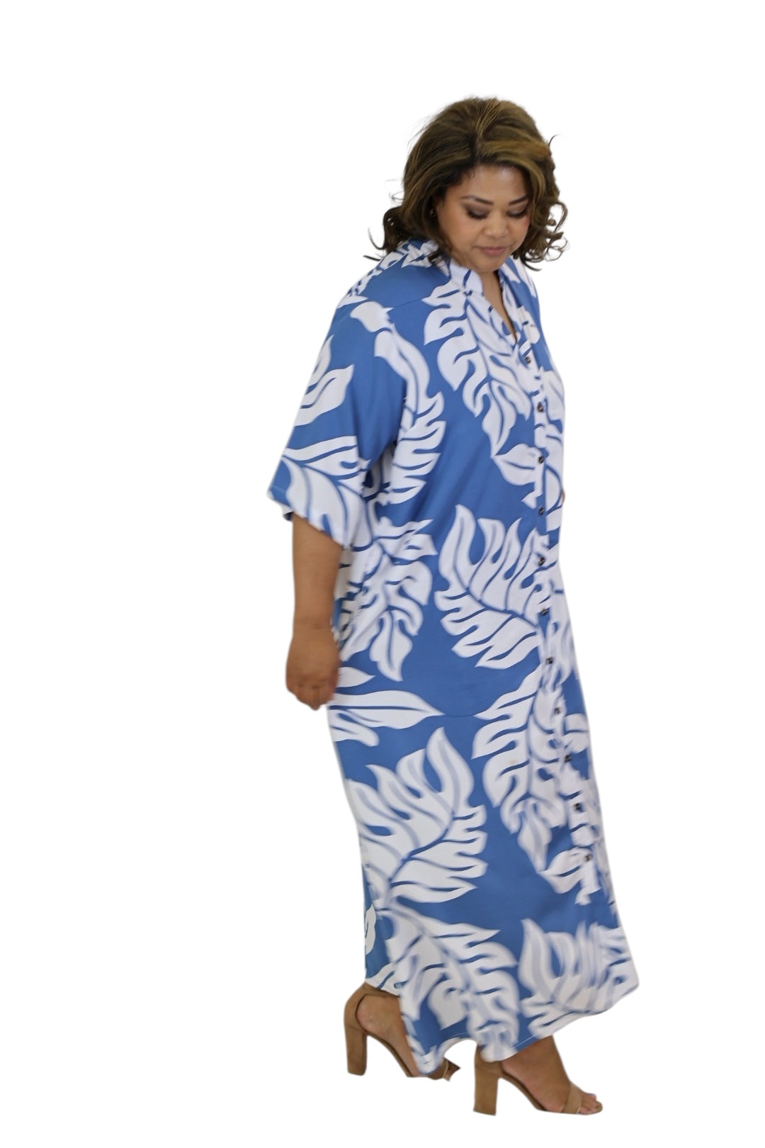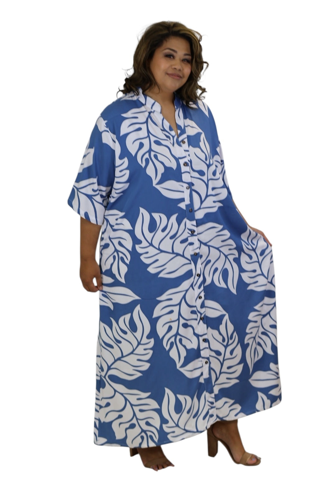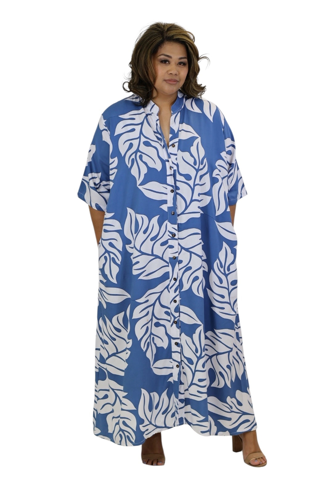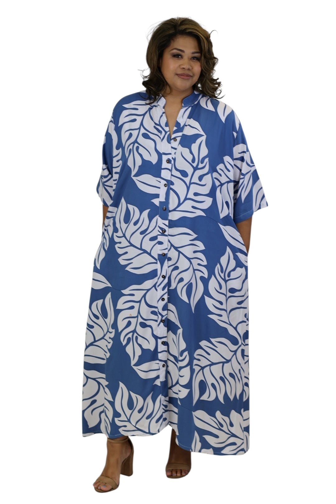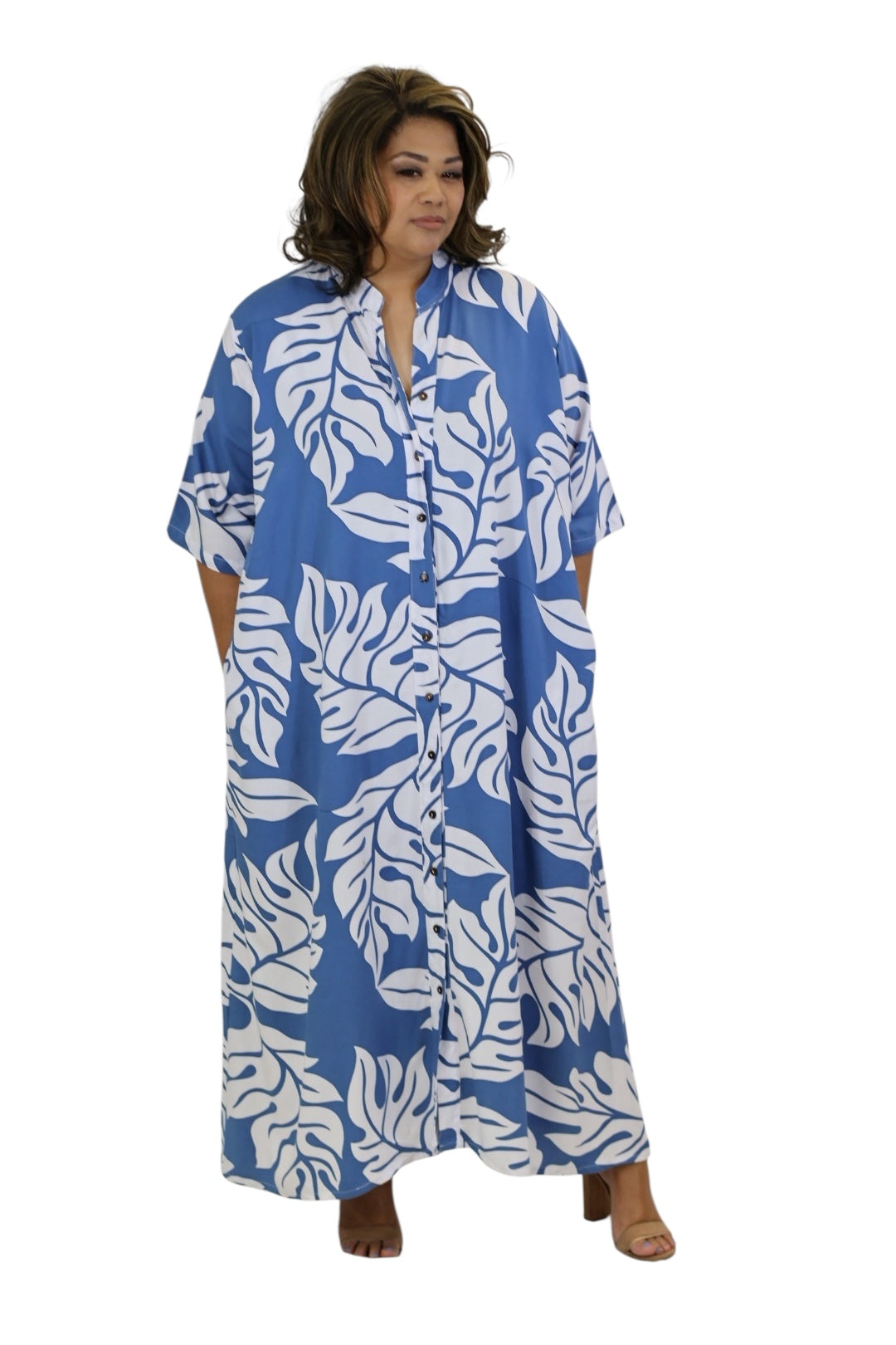 Effortless and bold, this long button-down shirt dress is crafted from soft, breathable rayon fabric that drapes beautifully on every body type. Featuring a vibrant orange leaf print over a deep brown base, it brings a touch of island-inspired elegance to your everyday style. Designed with 3/4 sleeves, functional side pockets, and a relaxed silhouette, this dress combines comfort with statement style.