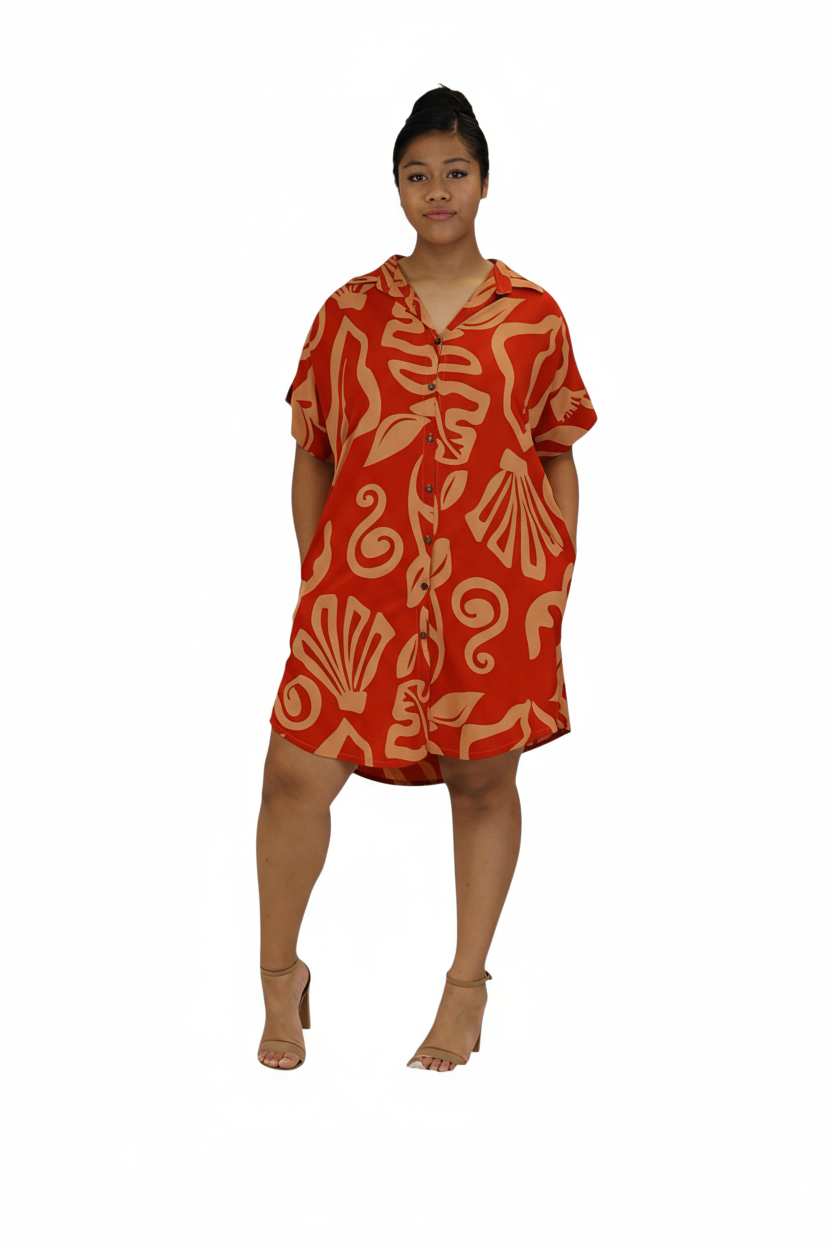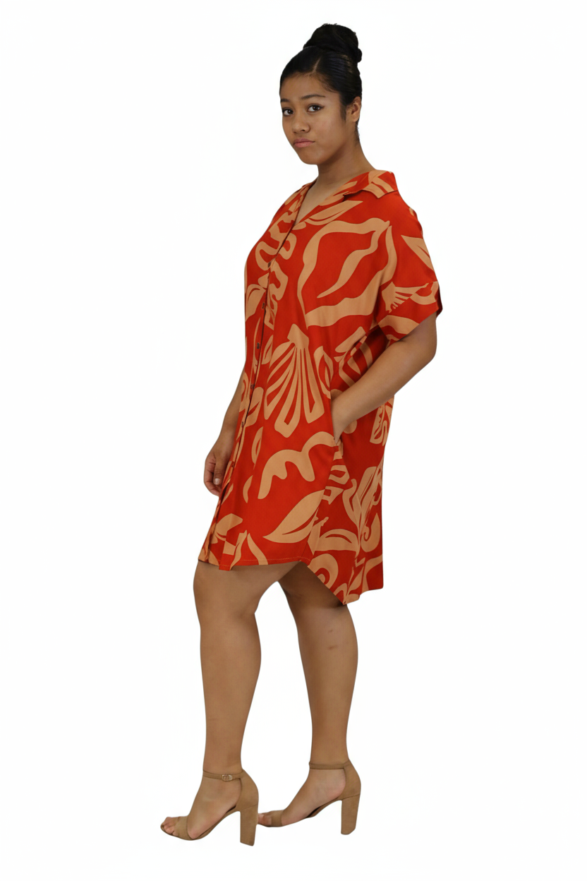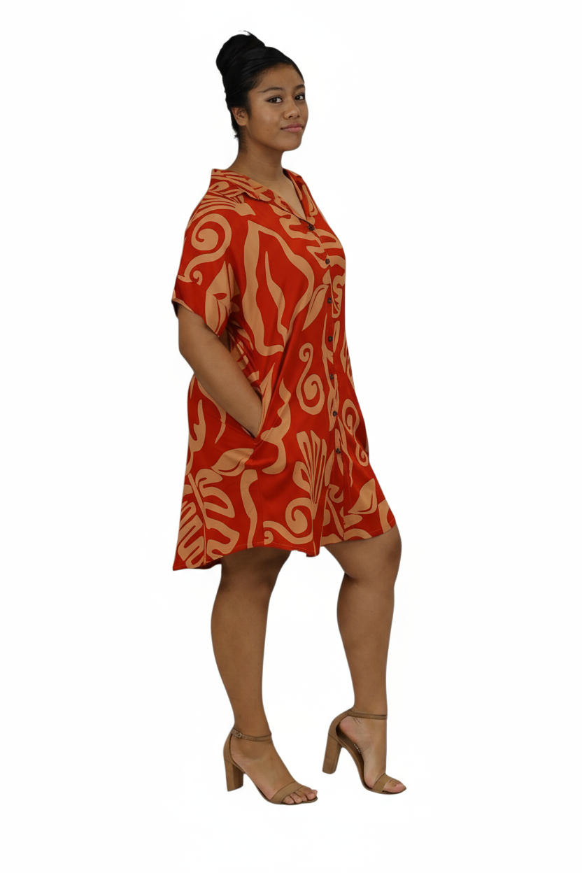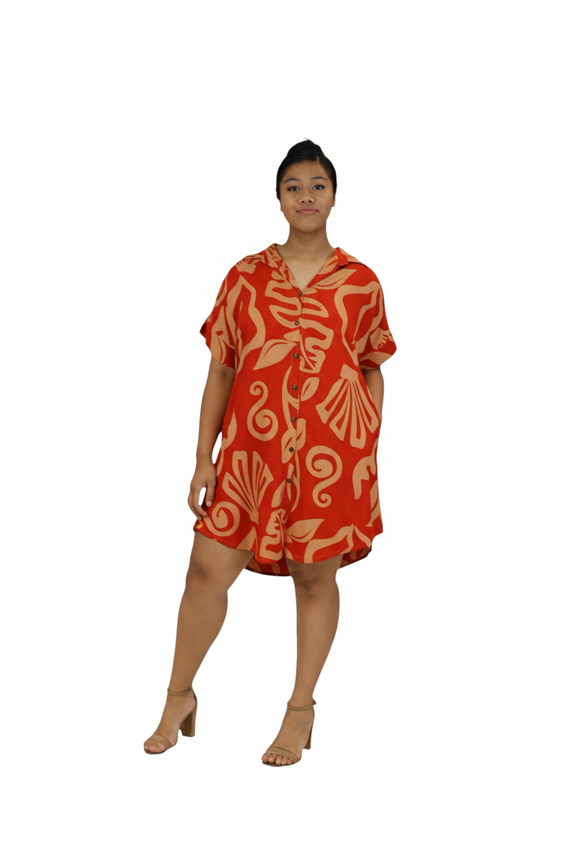A breezy island classic made for effortless style. This short shirt dress is crafted from soft rayon fabric and features a full button-down front with natural coconut shell buttons for an authentic island touch. Designed with short sleeves, a relaxed fit, and side pockets, its the perfect balance of comfort and style - ideal for warm days, beach strolls, or casual outings.
