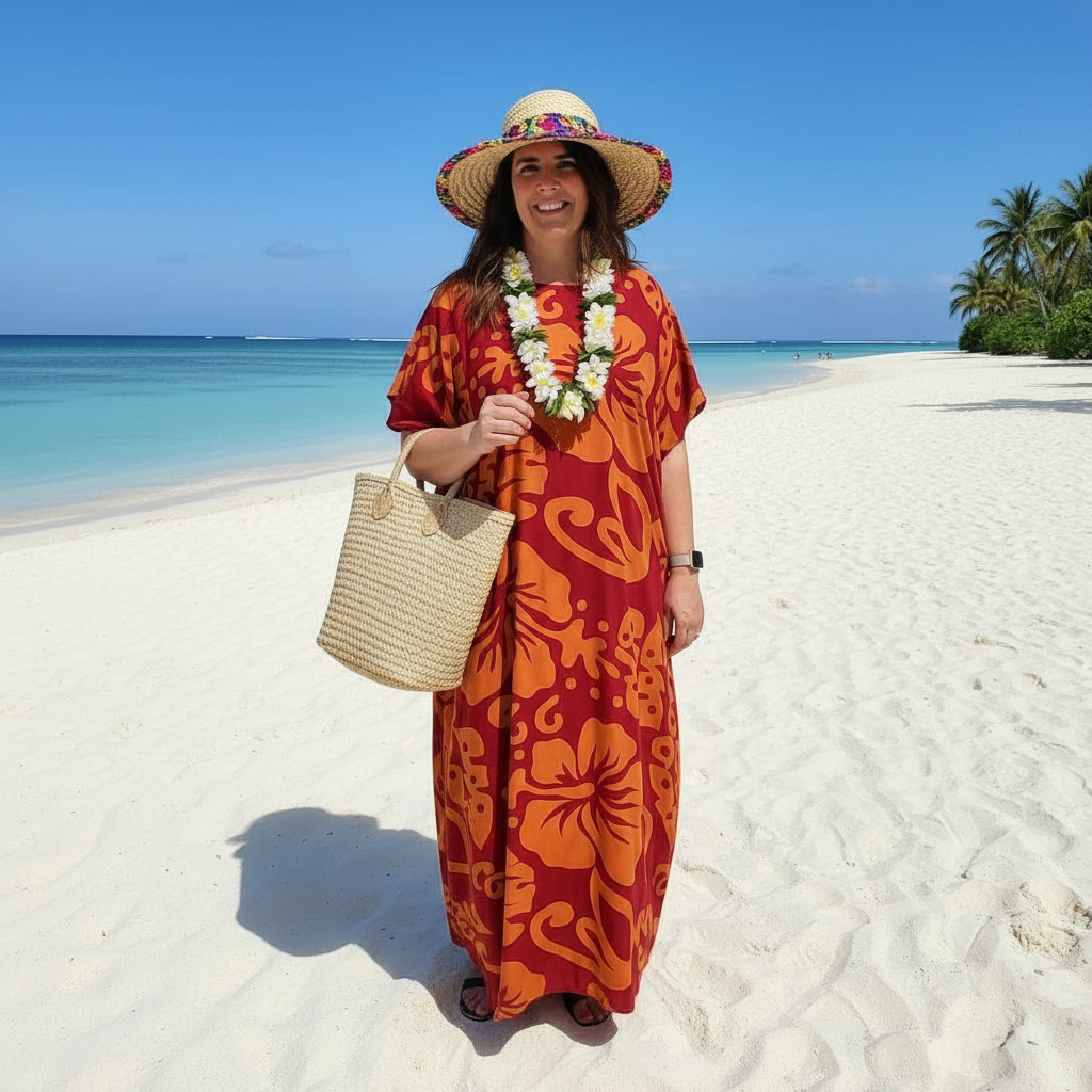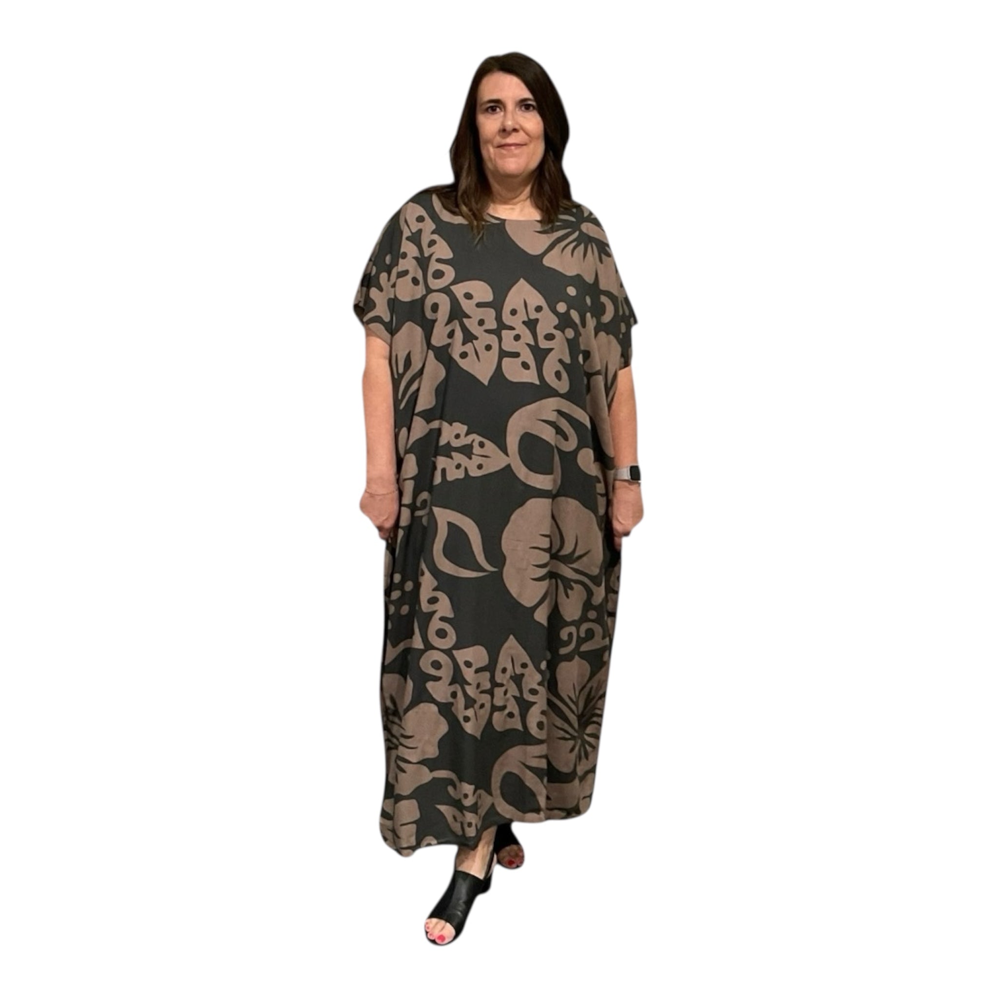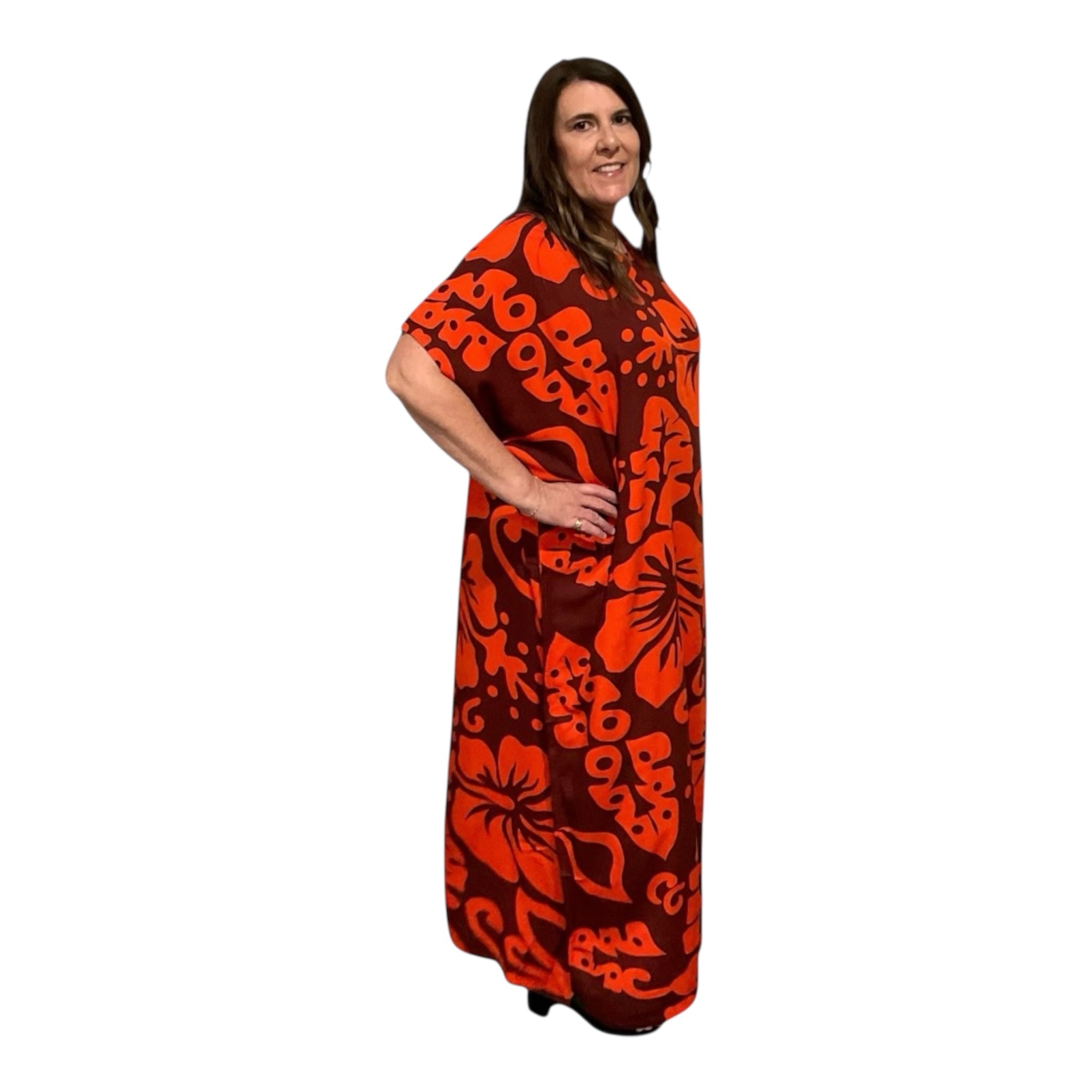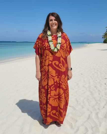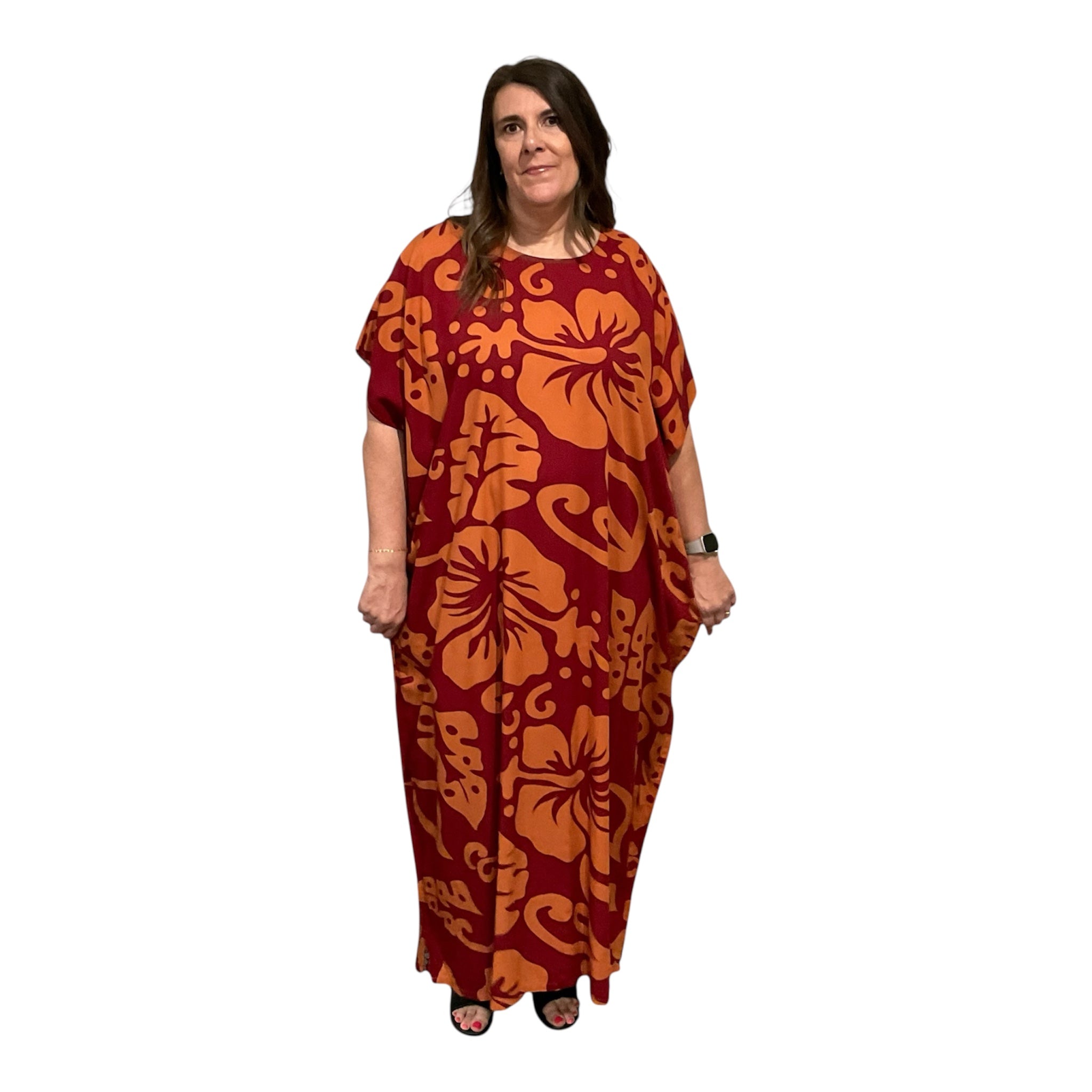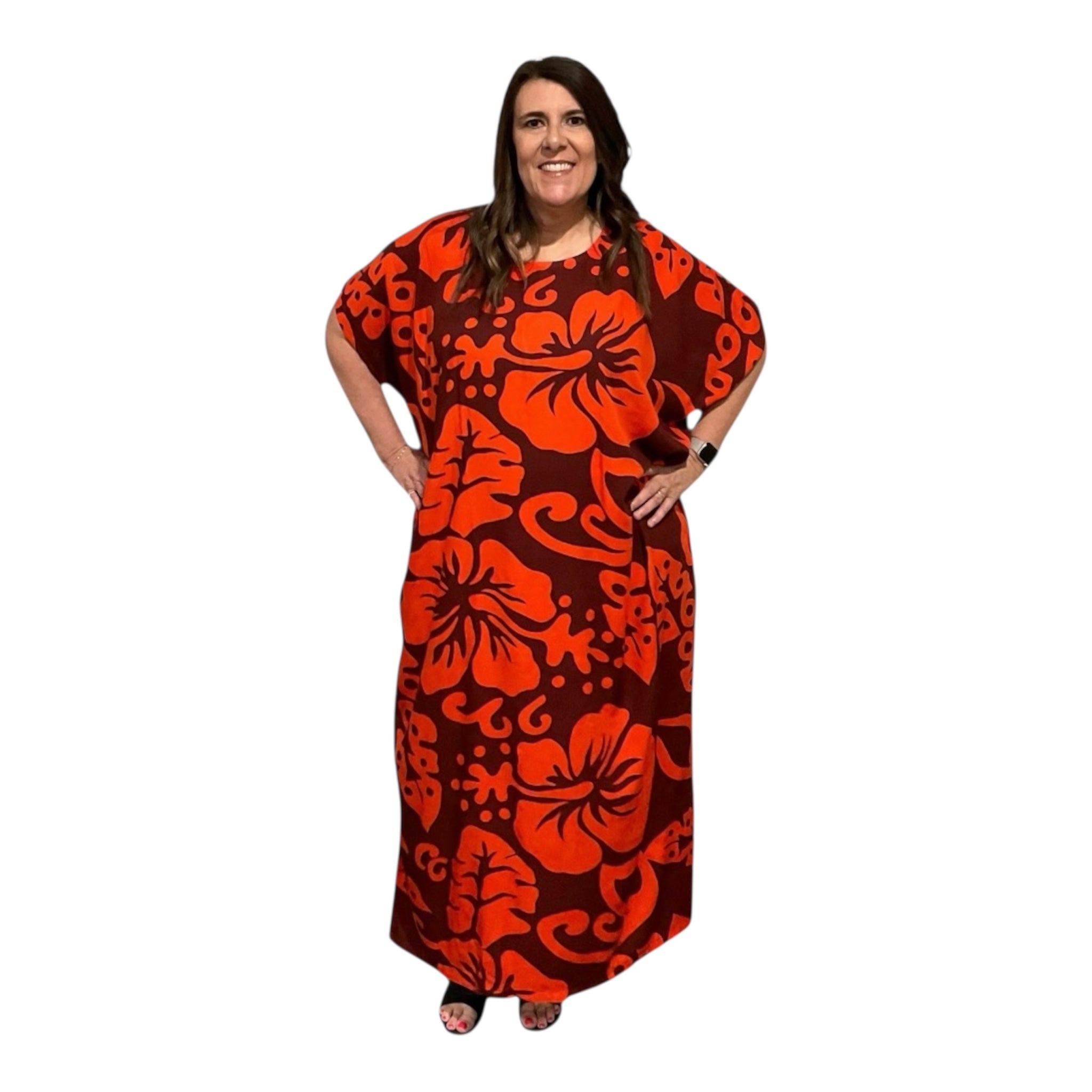 This stunning round-neck hibiscus print long dress captures tropical elegance with its vibrant floral design. Perfect for any season, its flowing silhouette ensures both comfort and sophistication, making it a versatile addition to your wordrobe