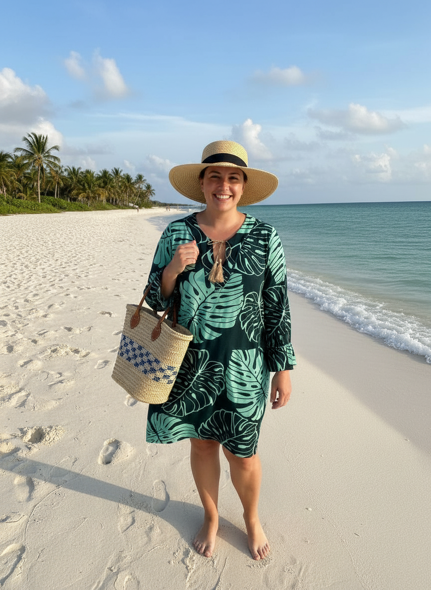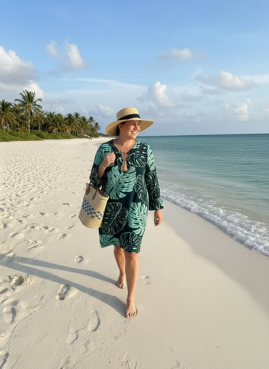 WOMEN'S TOP DETAILS Green monstera print Drawstring with v-neck Slit on the sides Frills below the sleeves Relaxed and comfortable... Read more