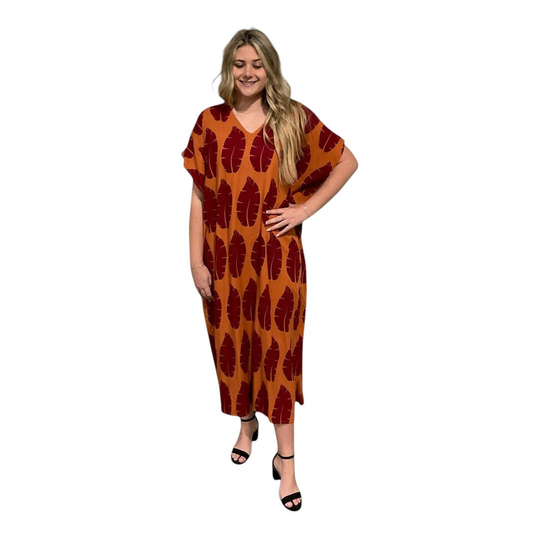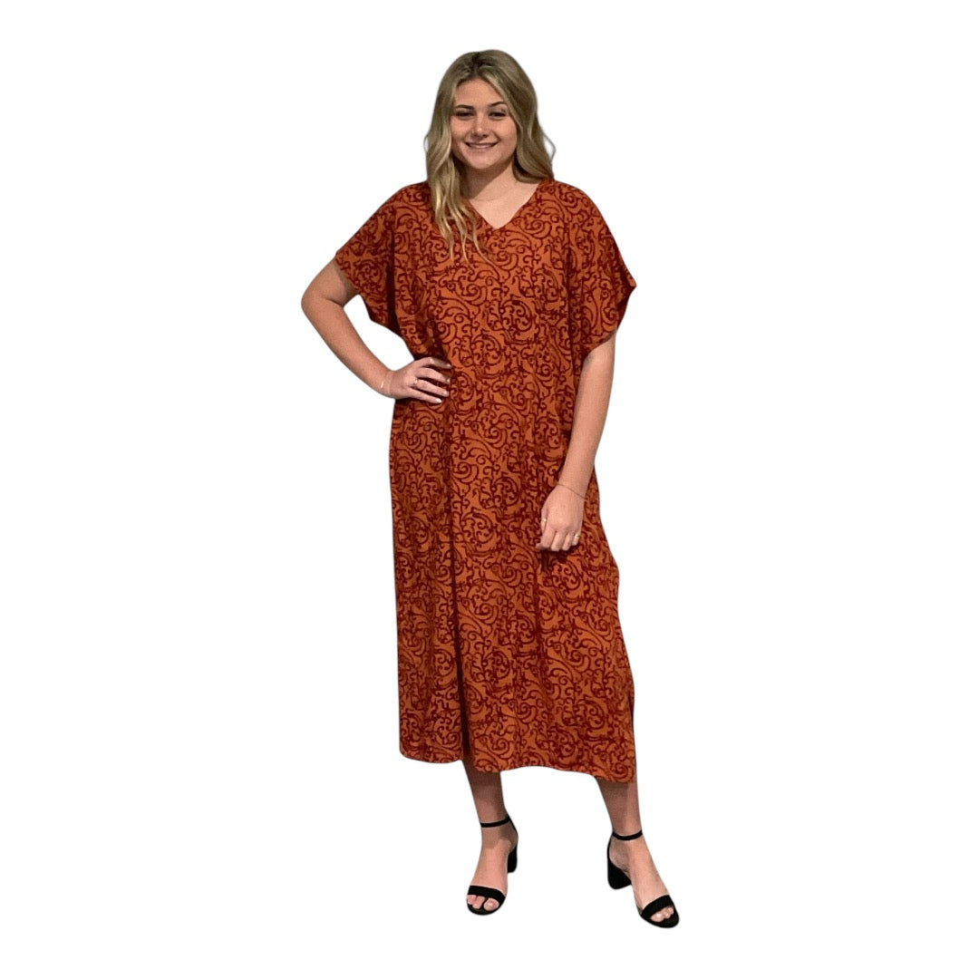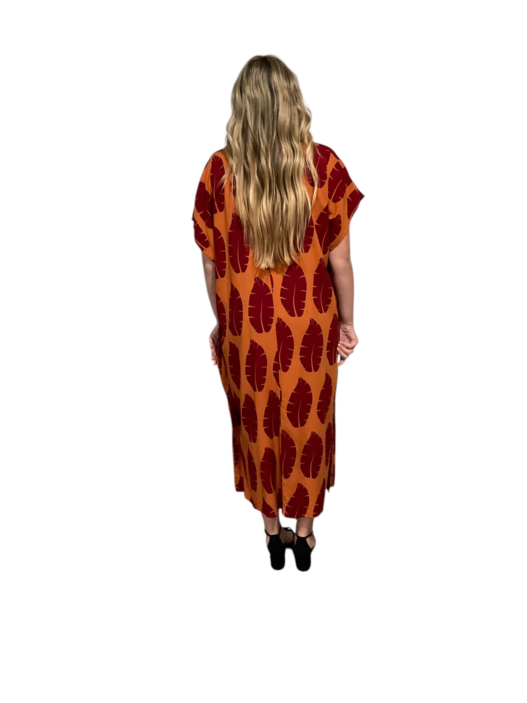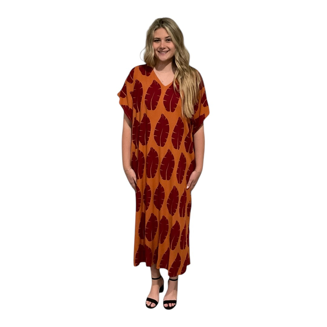 This V-neck long kaftan combines relaxed elegance with a flowing silhouette, perfect for casual wear or beach outings. Its lightweight fabric ensures all-day comfort while maintaining a chic and breezy style.