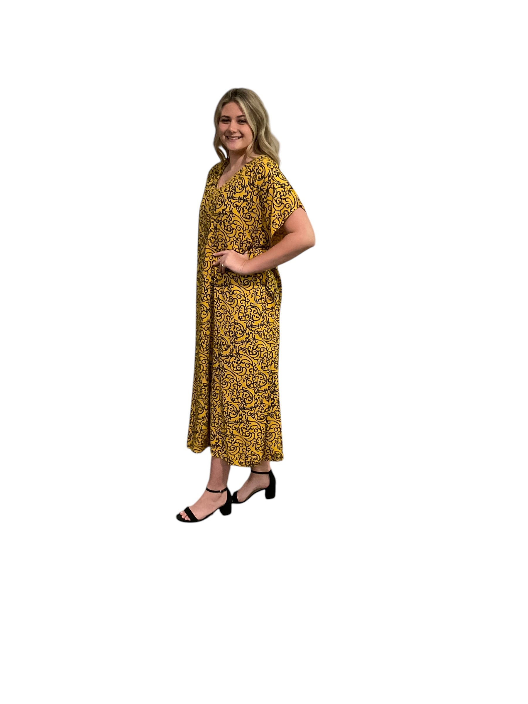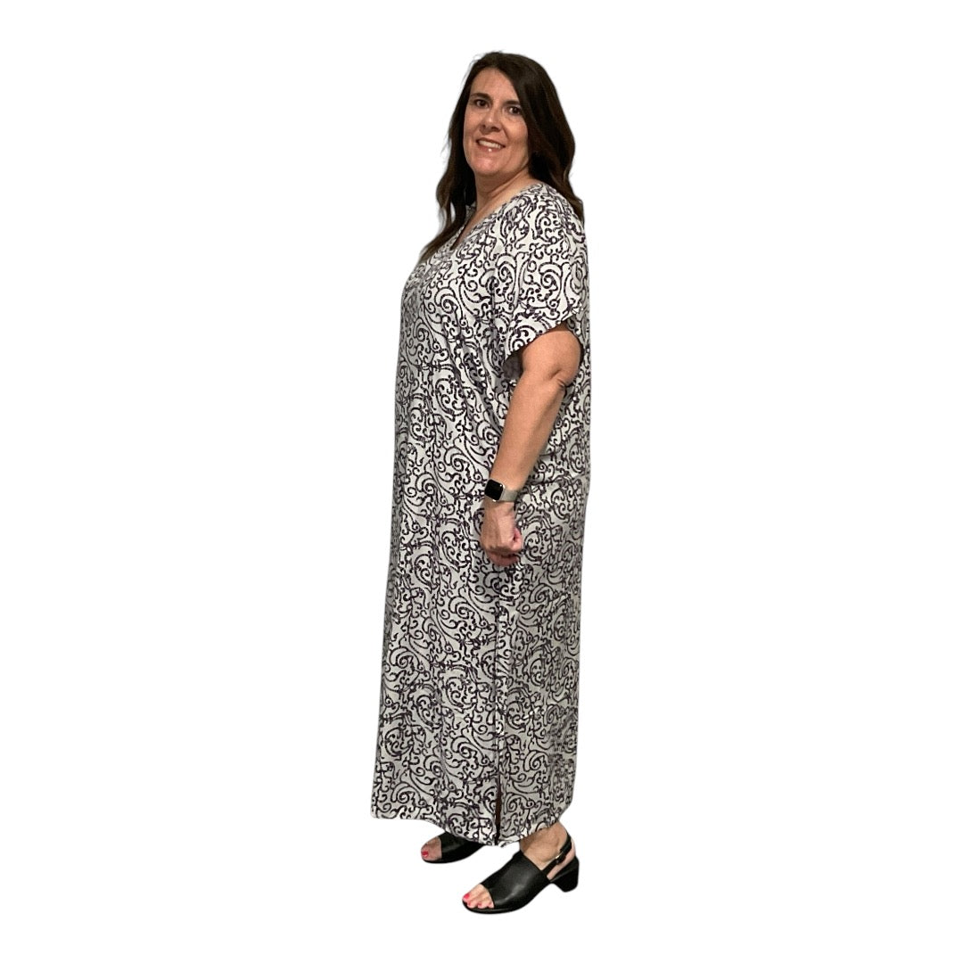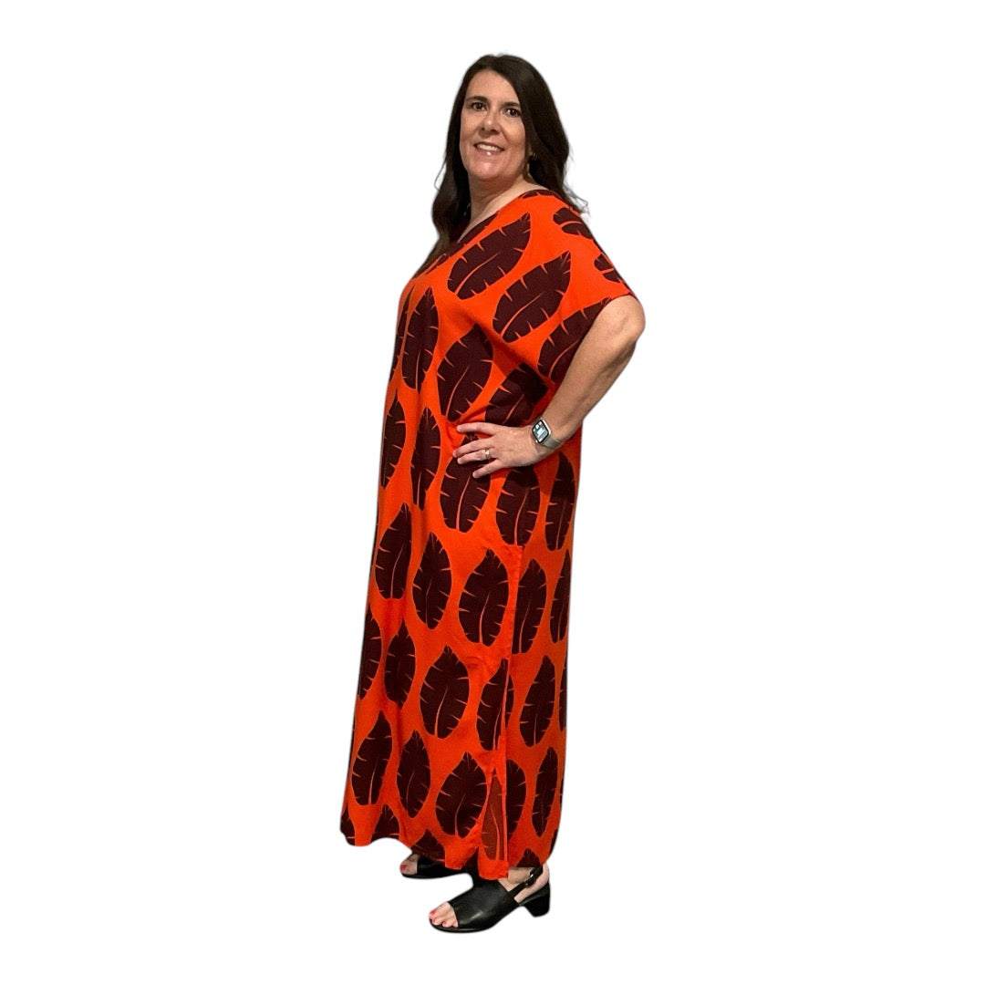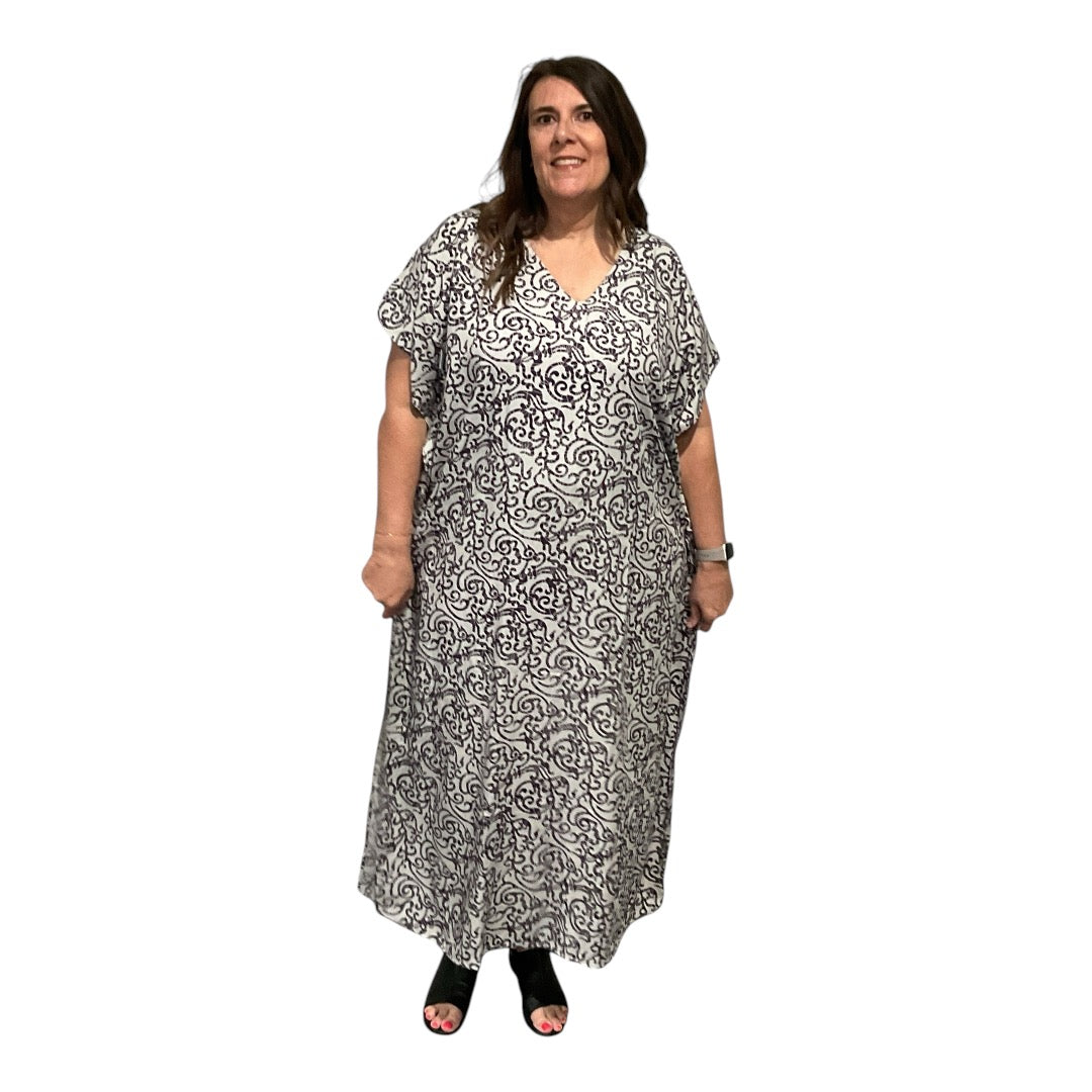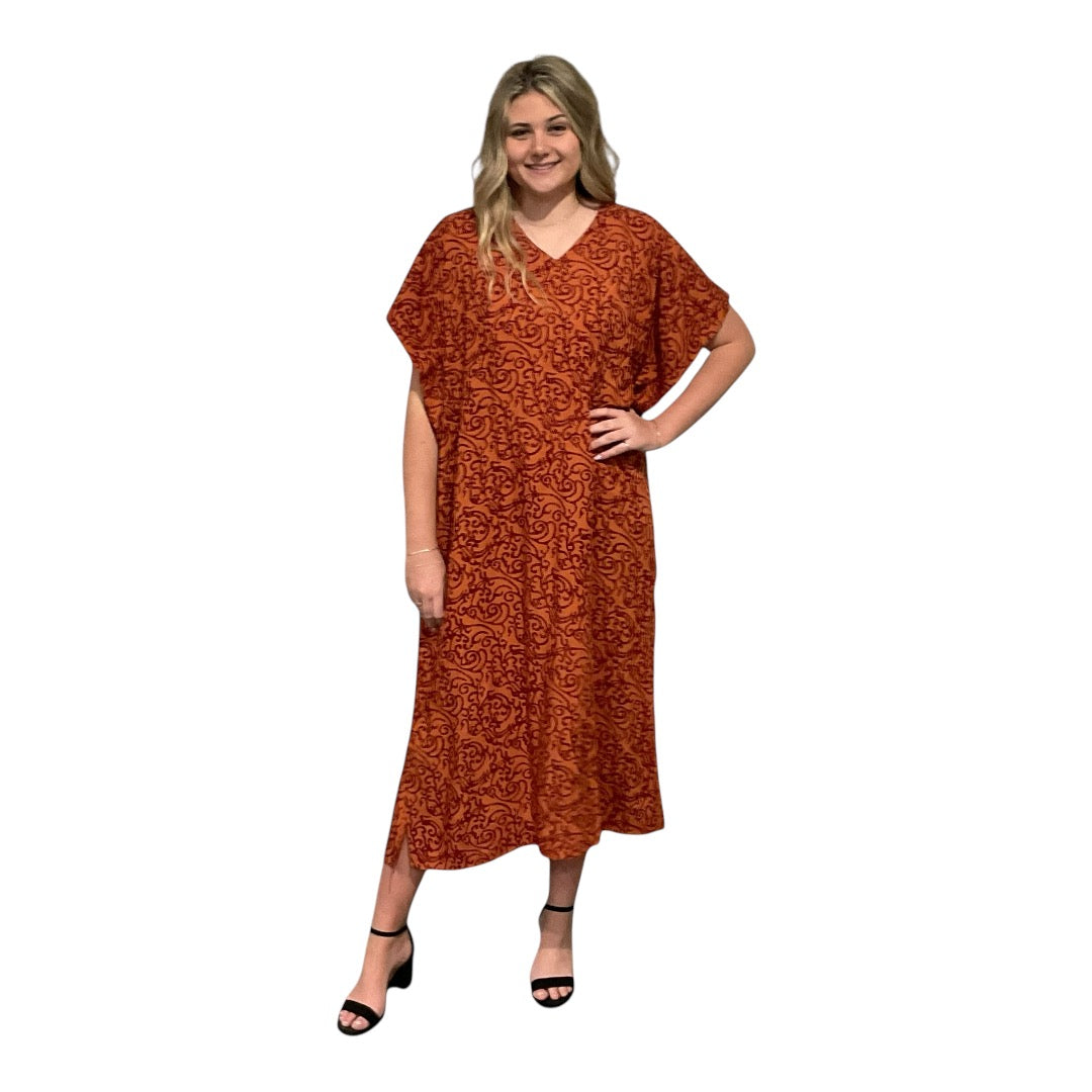 This V-neck long kaftan combines relaxed elegance with a flowing silhouette, perfect for casual wear or beach outings. Its lightweight fabric ensures all-day comfort while maintaining a chic and breezy style.